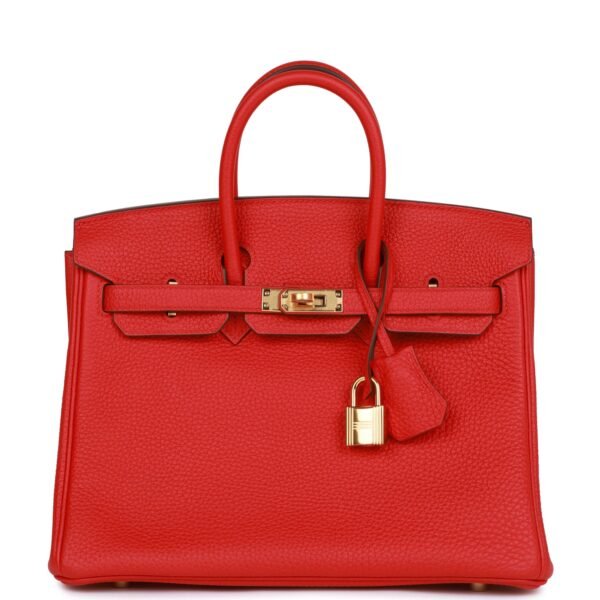 This Birkin is in Rouge de Coeur togo leather with gold hardware and features tonal stitching,front flap, two straps with center toggle closure, clochette with lock and two keys, and double rolled handles.