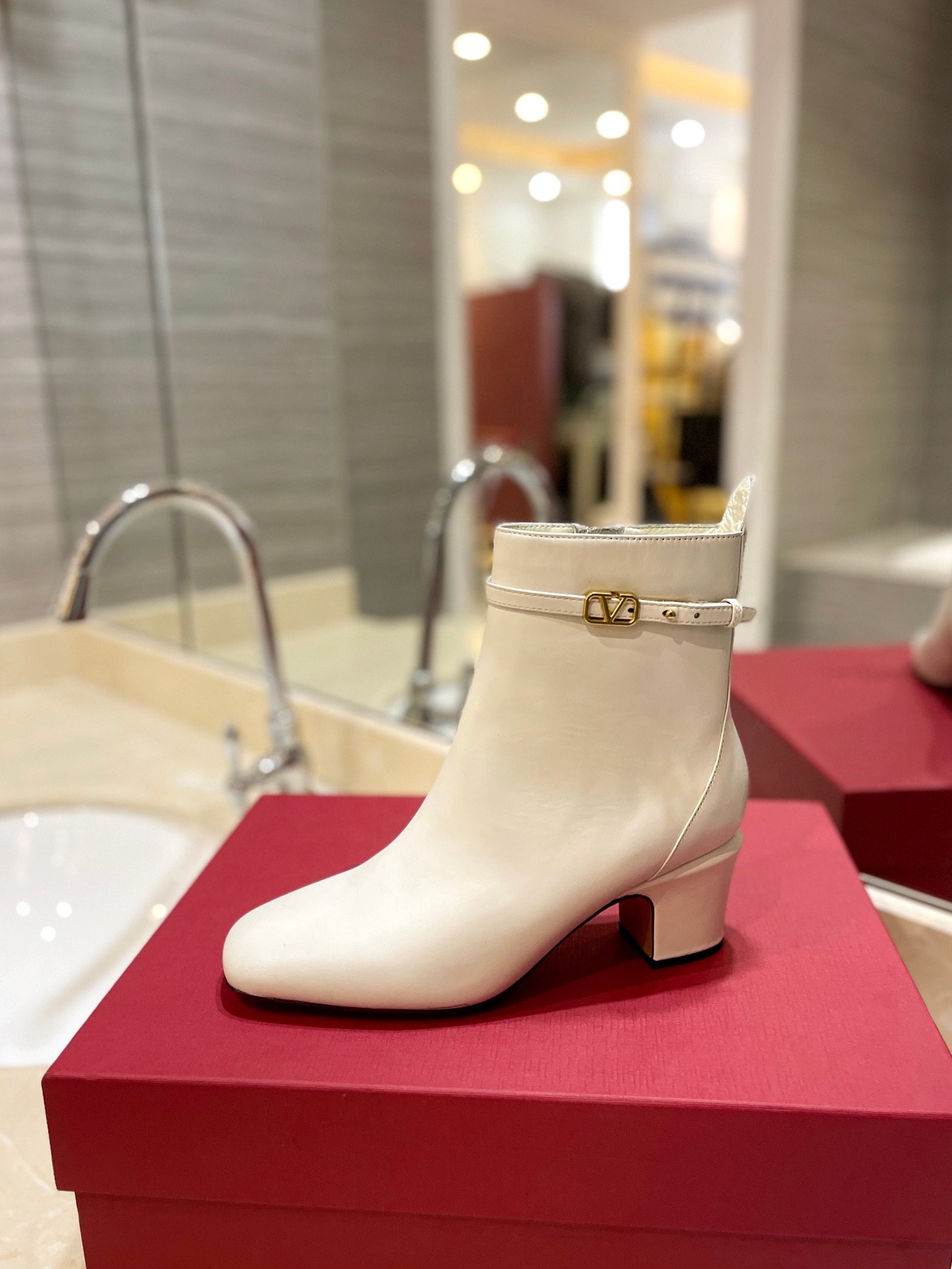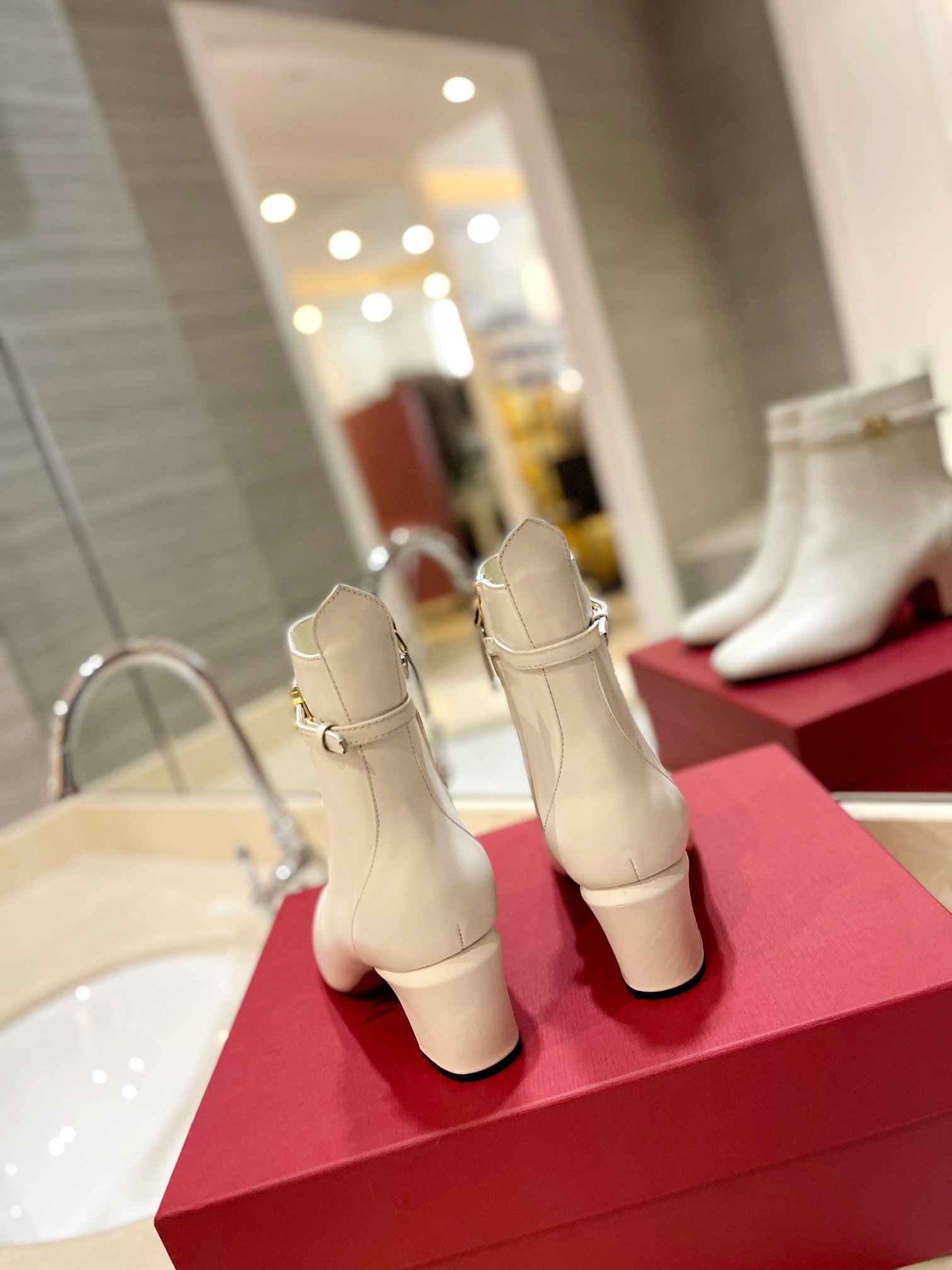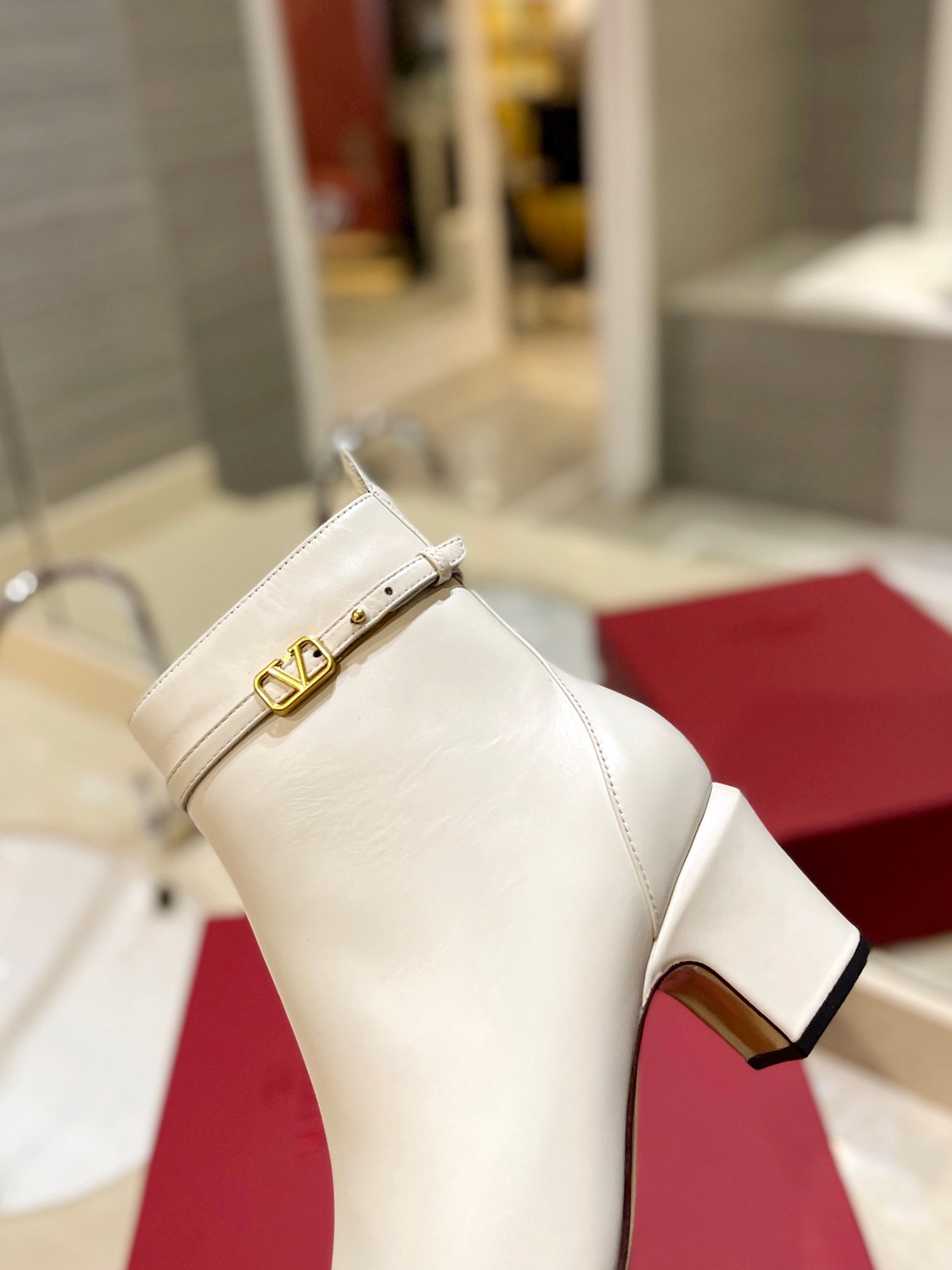 1:1 Replica Shoes White Ankle strap with customized VLogo Signature buckle Inner side zip Leather-covered block heel