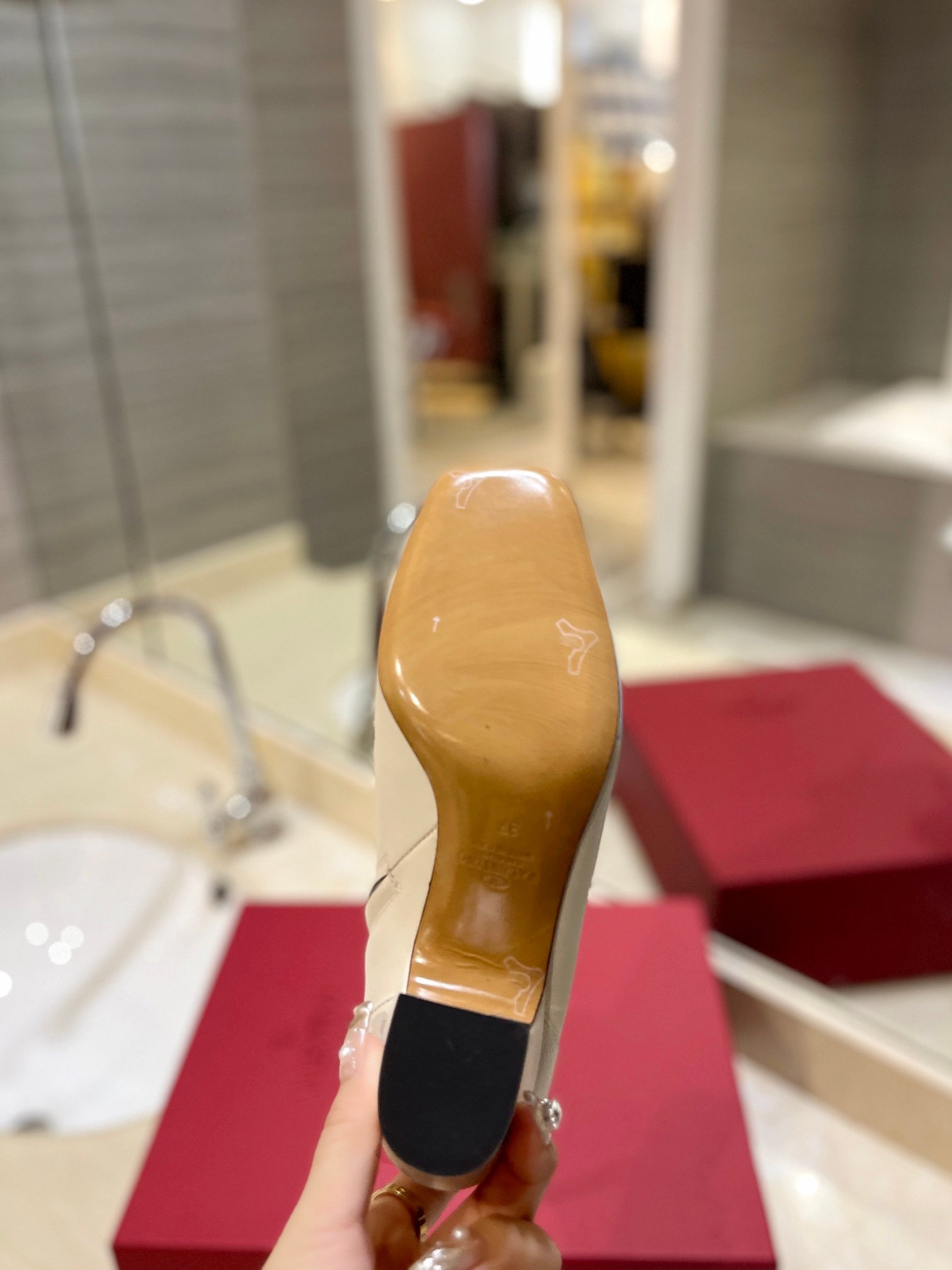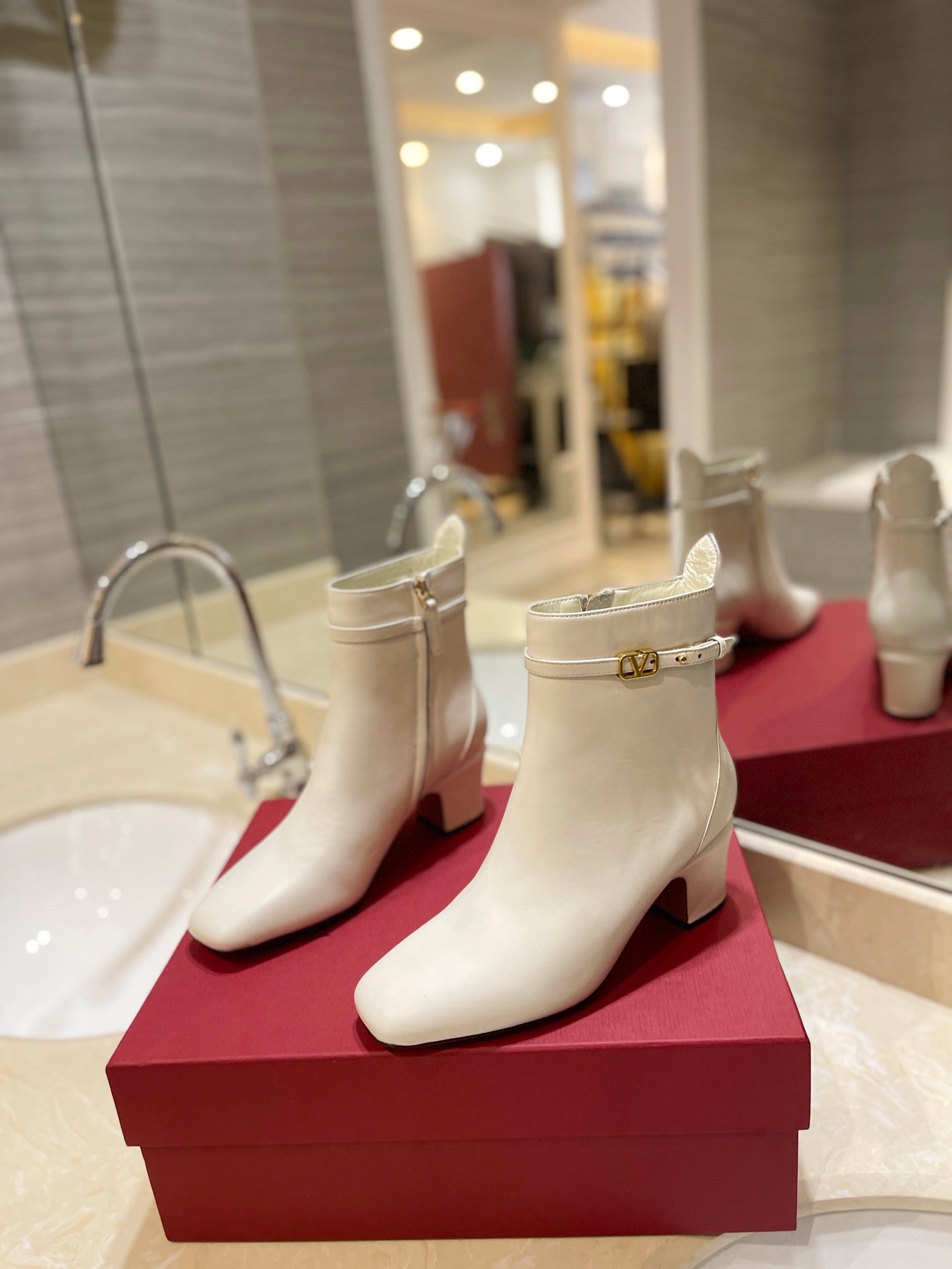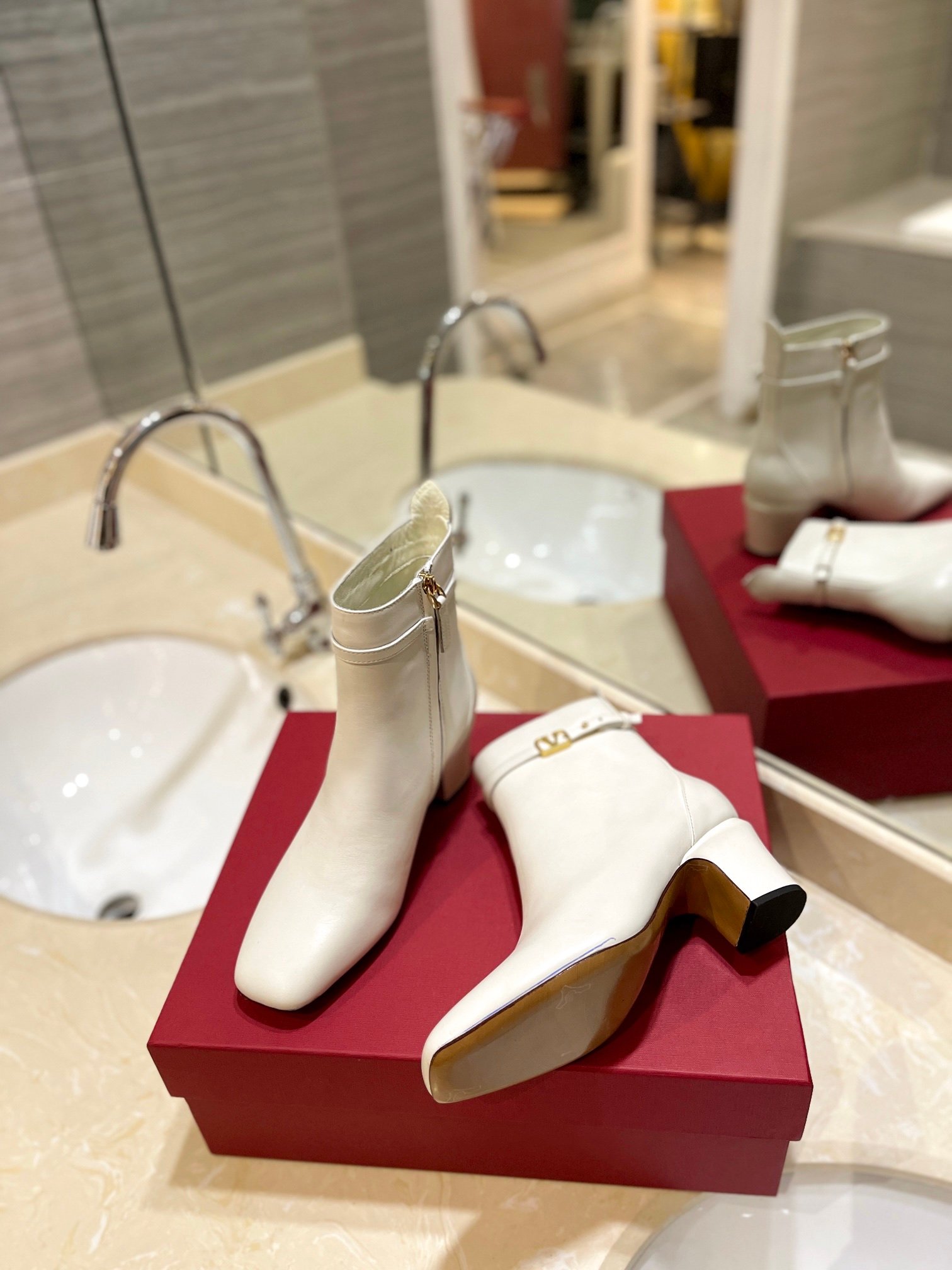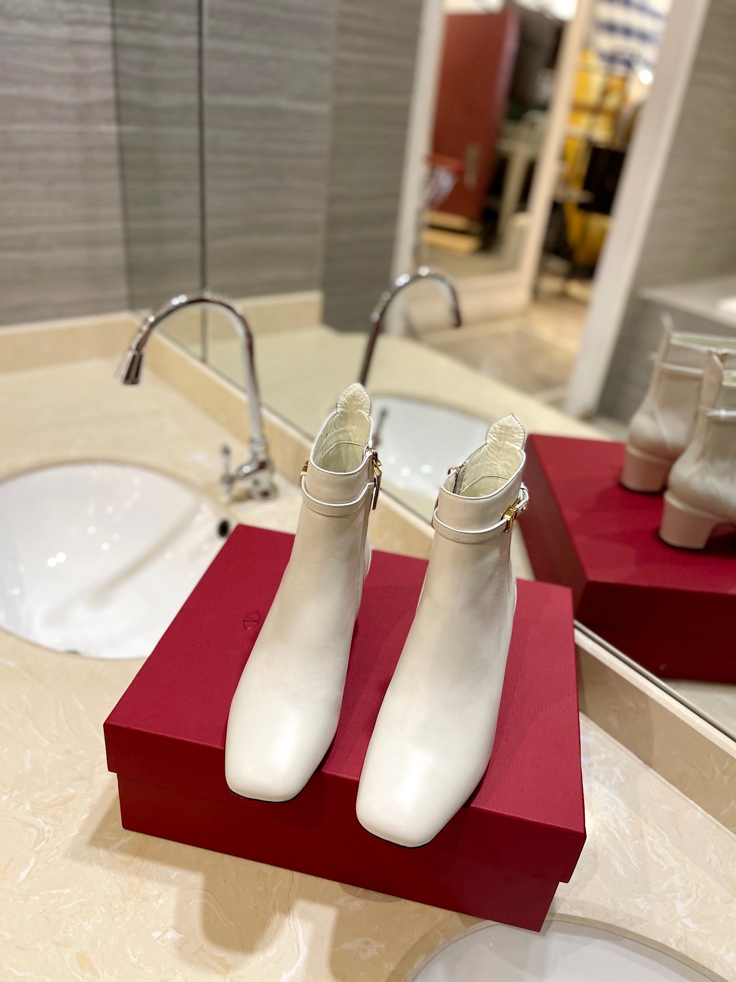 1:1 Replica Shoes White Ankle strap with customized VLogo Signature buckle Inner side zip Leather-covered block heel