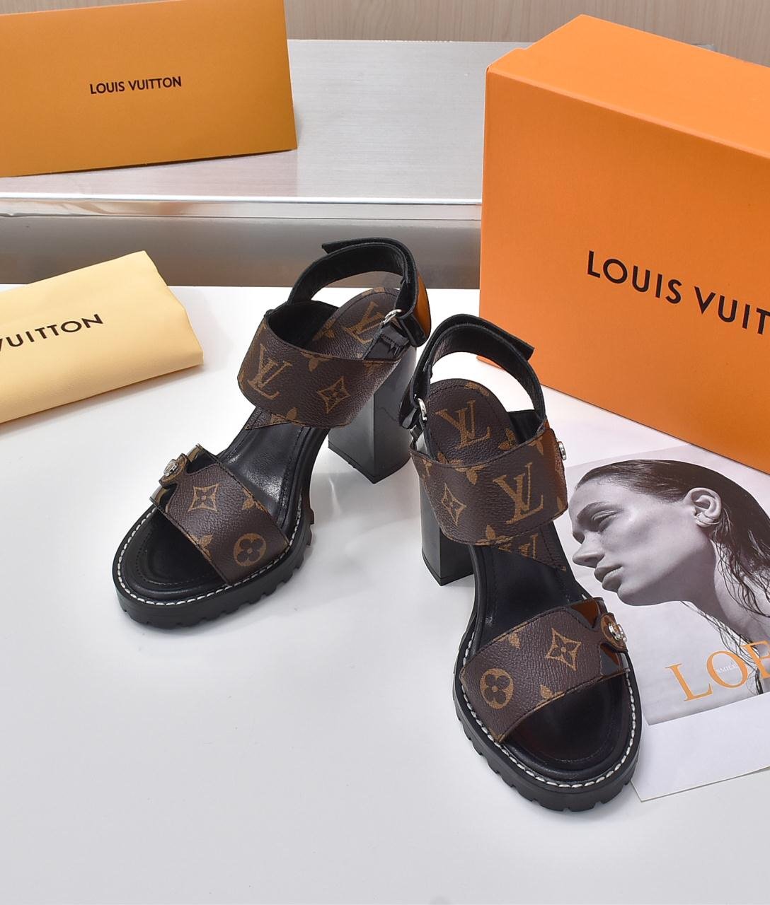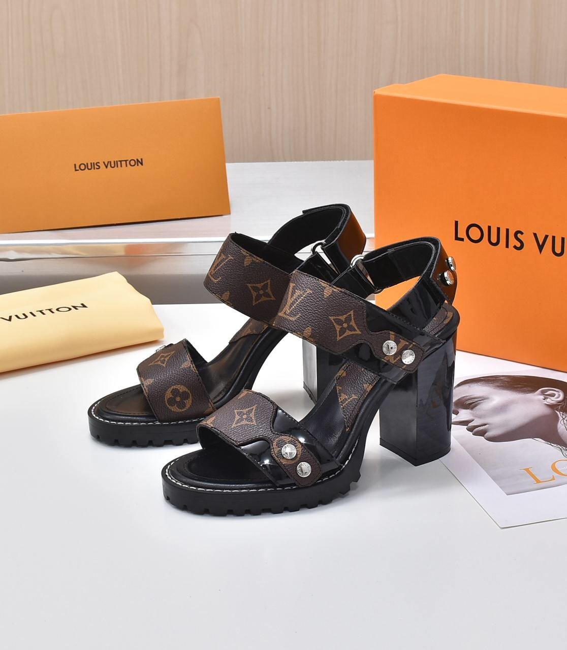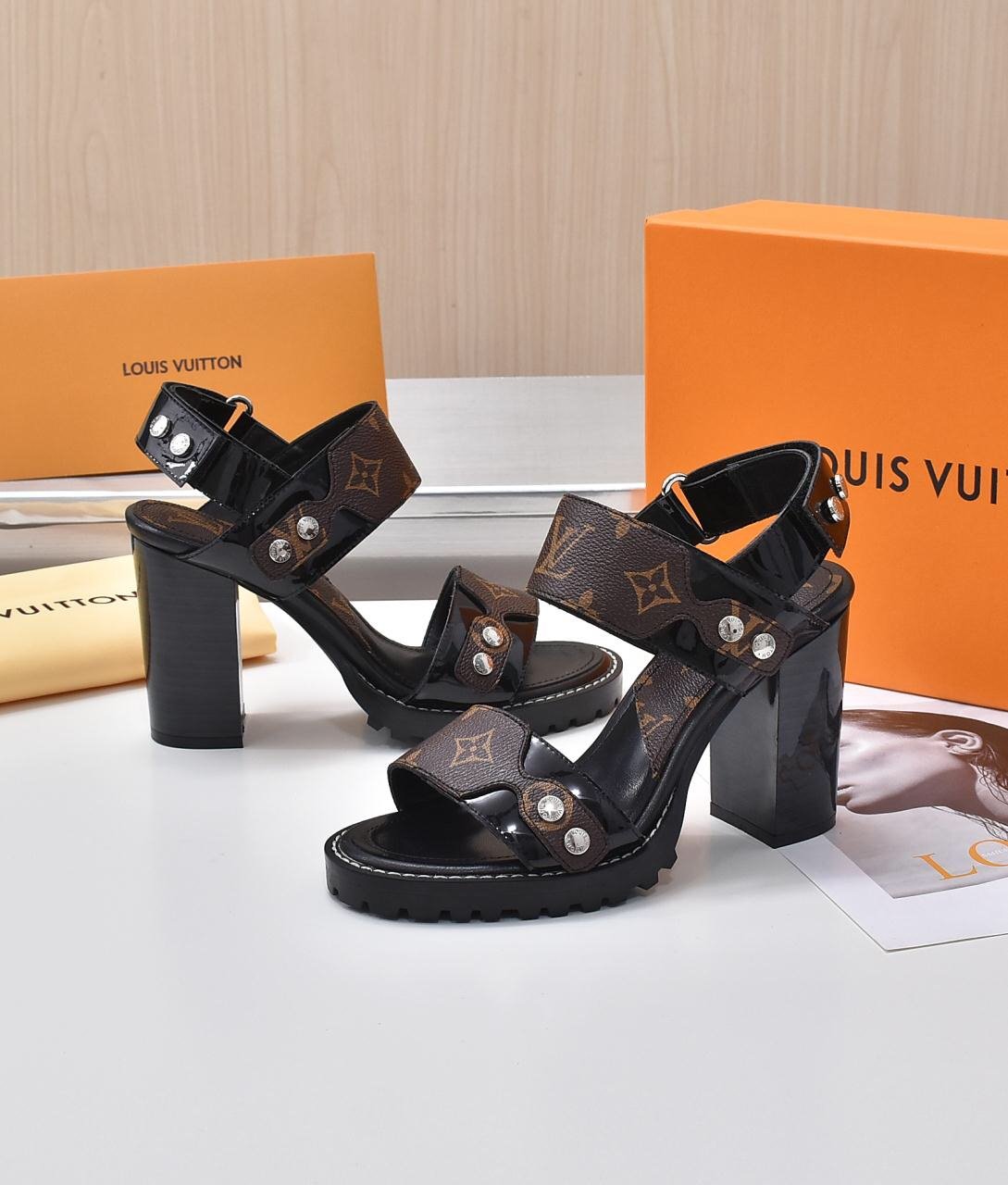 1:1 REPLICA SHOES Monogram Calf leather and patent calf leather Treaded rubber outsole 9.5 cm/3.7-inch heel