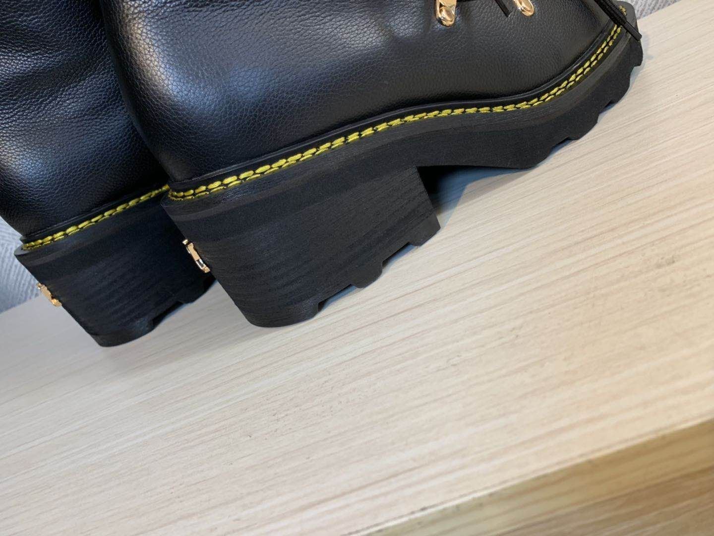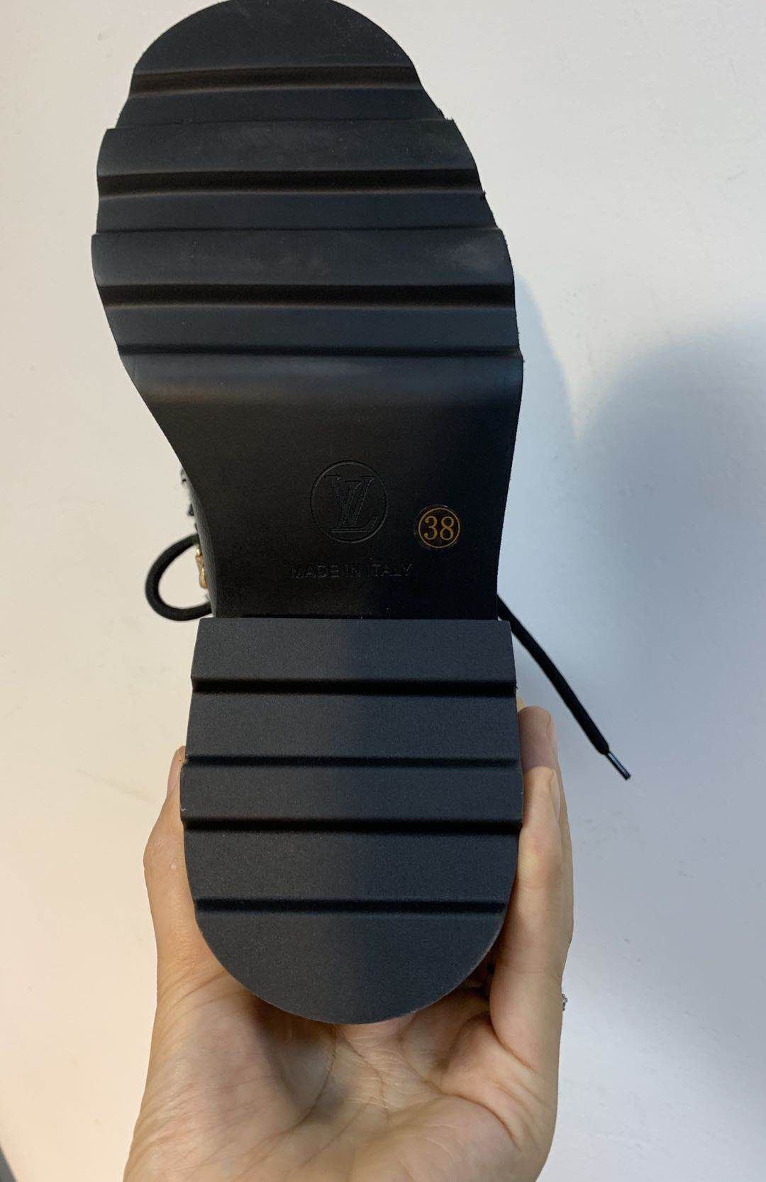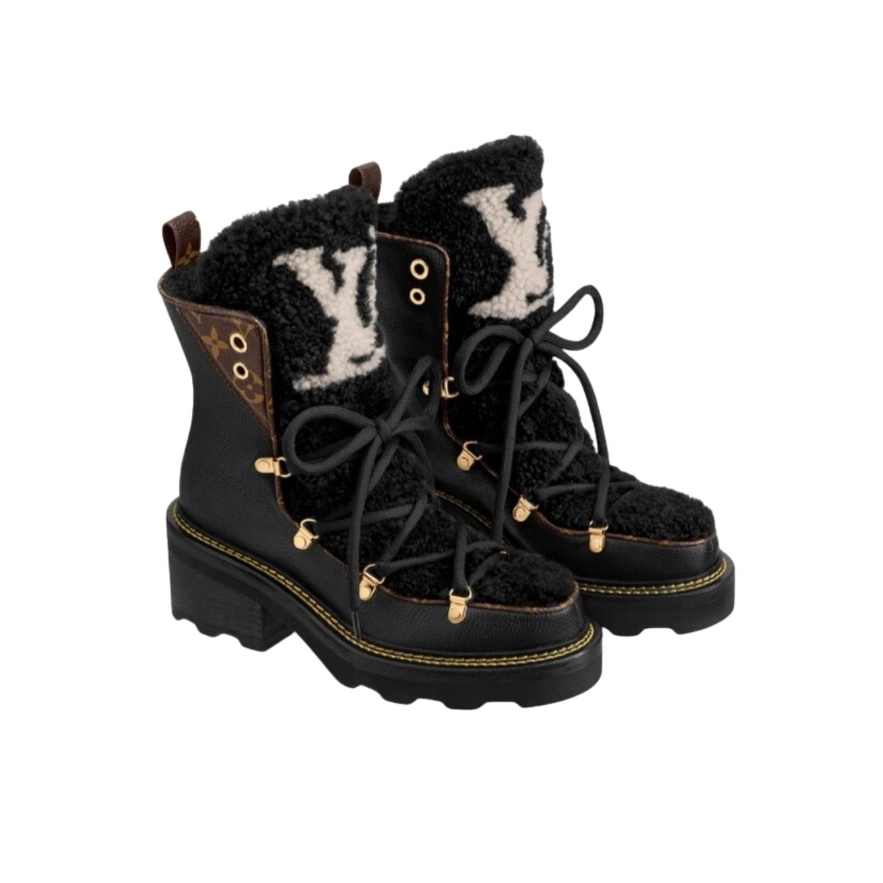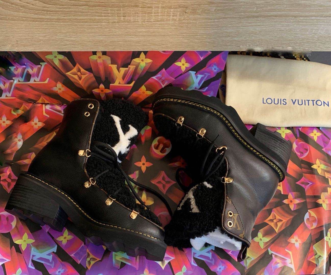 - A warm and cozy wool lining AND a shearling tongue with an oversized LV Initial signature.