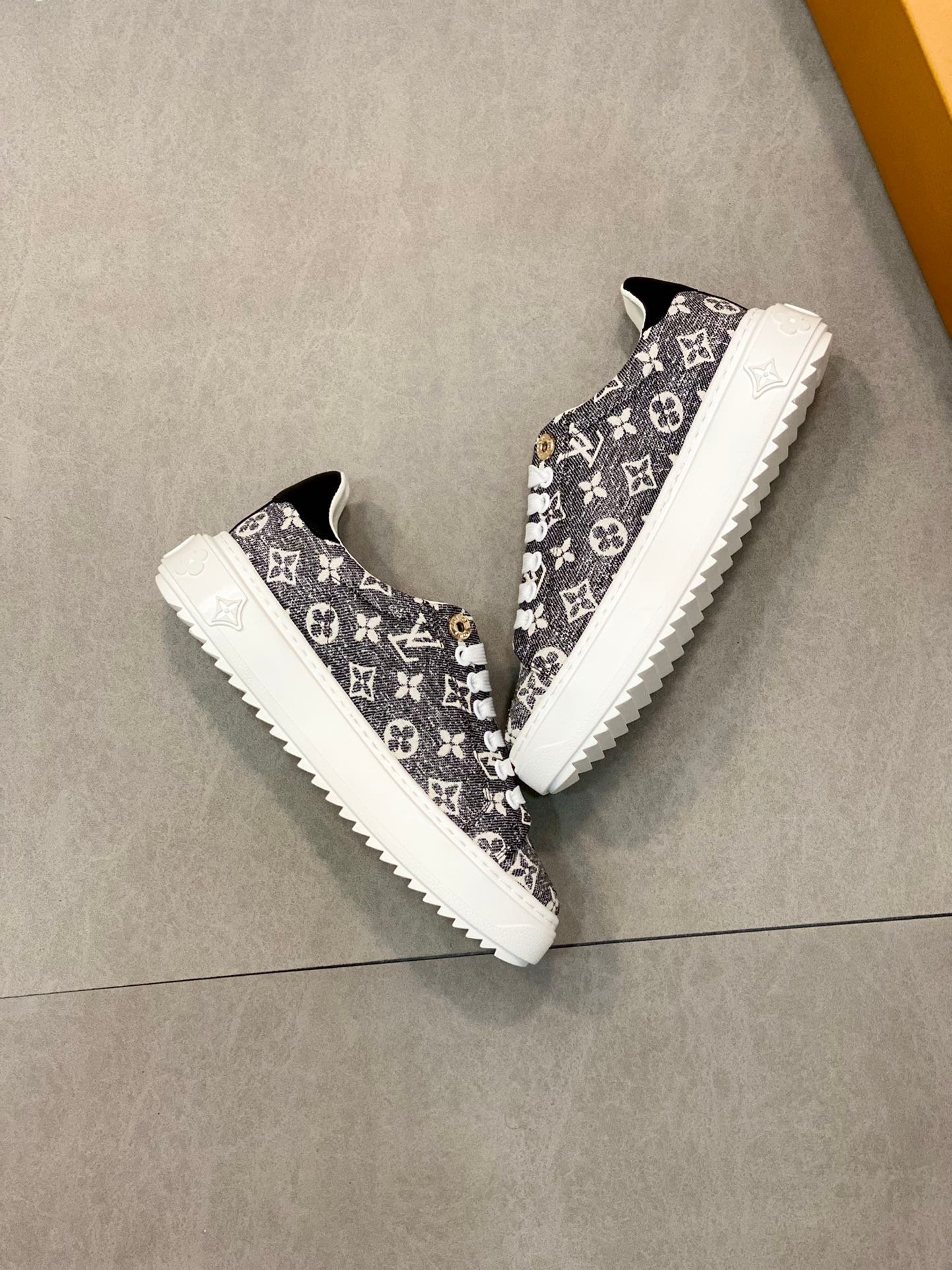 1:1 Replica Shoes Gray Monogram denim Elevated, treaded rubber outsole Louis Vuitton-engraved eyelets Monogram Flowers on the outsole