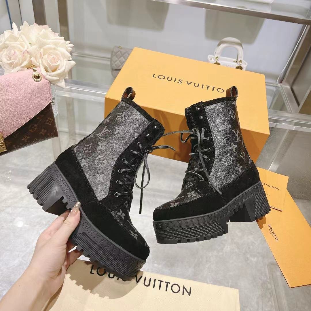 1:1 REPLICA SHOES Suede calf leather and patent Monogram canvas Black Treaded rubber outsole