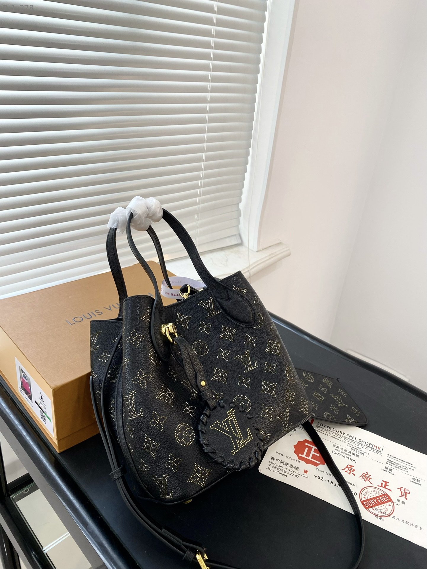 1:1 Replica Bags Measurement: 20 x 20 cm / 7.8 x 7.8 inches Black Mahina calfskin leather Calfskin-leather trim Microfiber lining Gold-color hardware Inside removable zipped pocket attached to a leather tie Magnetic clasp closure Inside hook for a secondary closure option Removable LV leather braided charm Strap:?Removable, adjustable