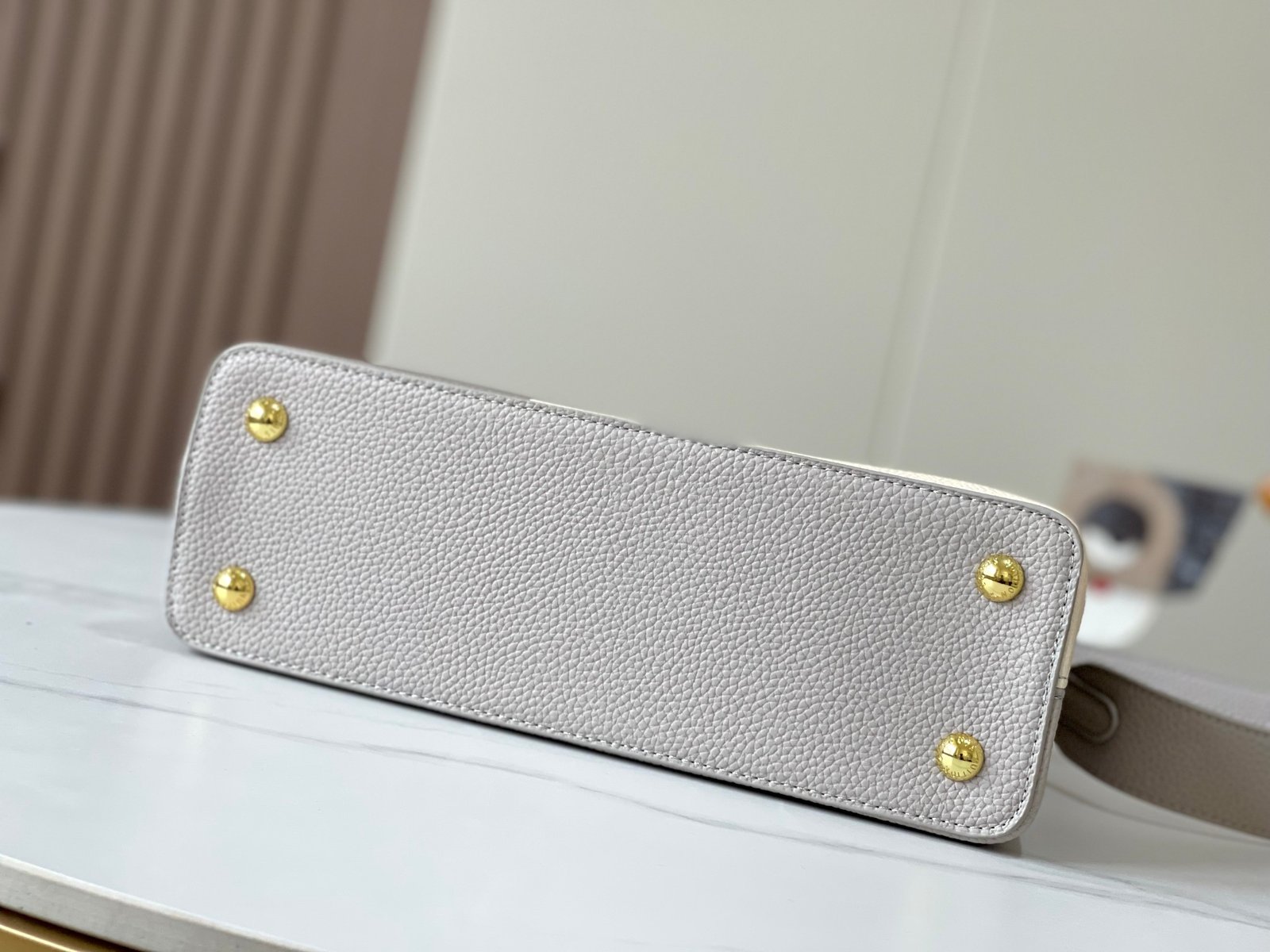 - Gold-color hardware