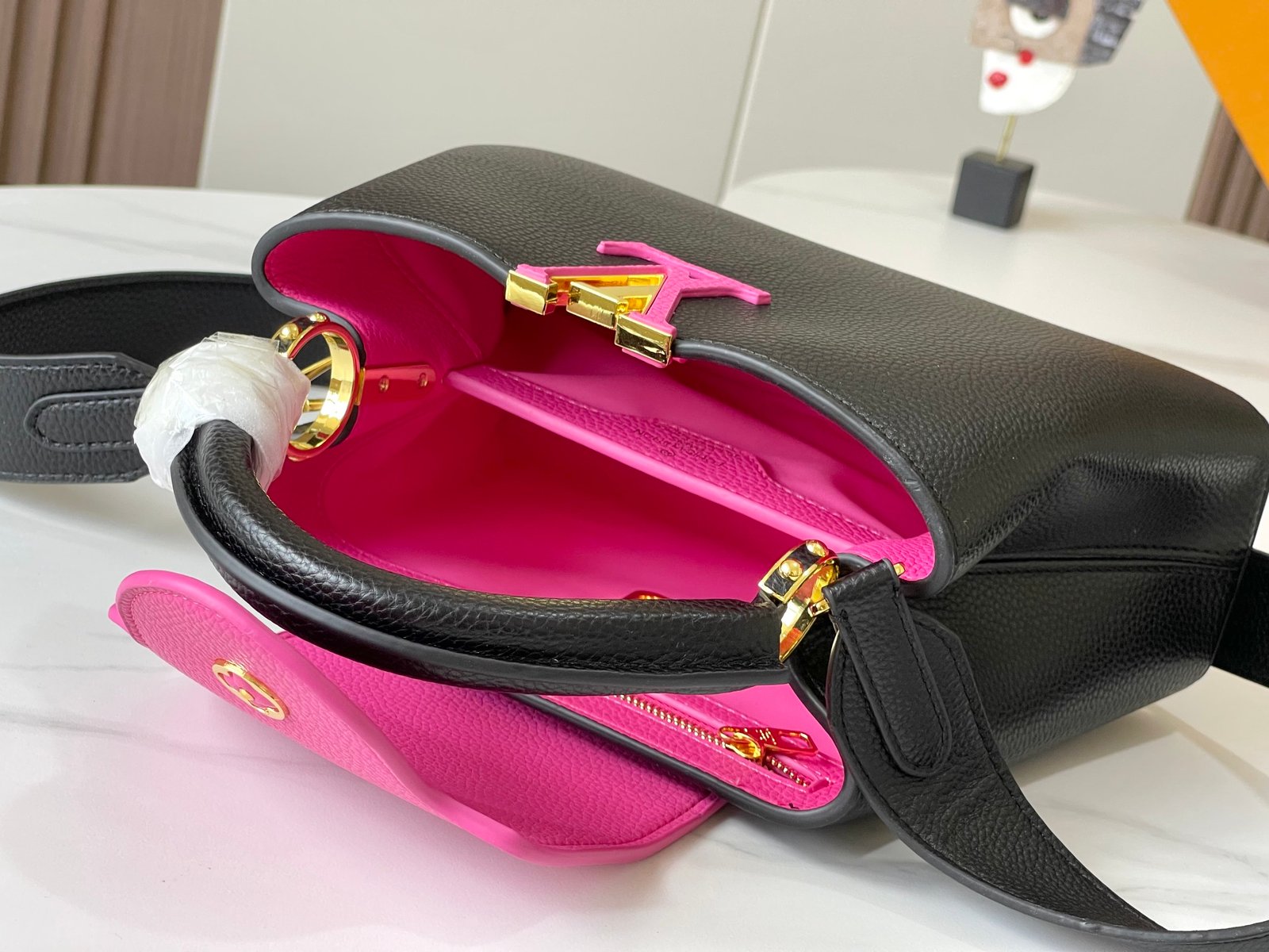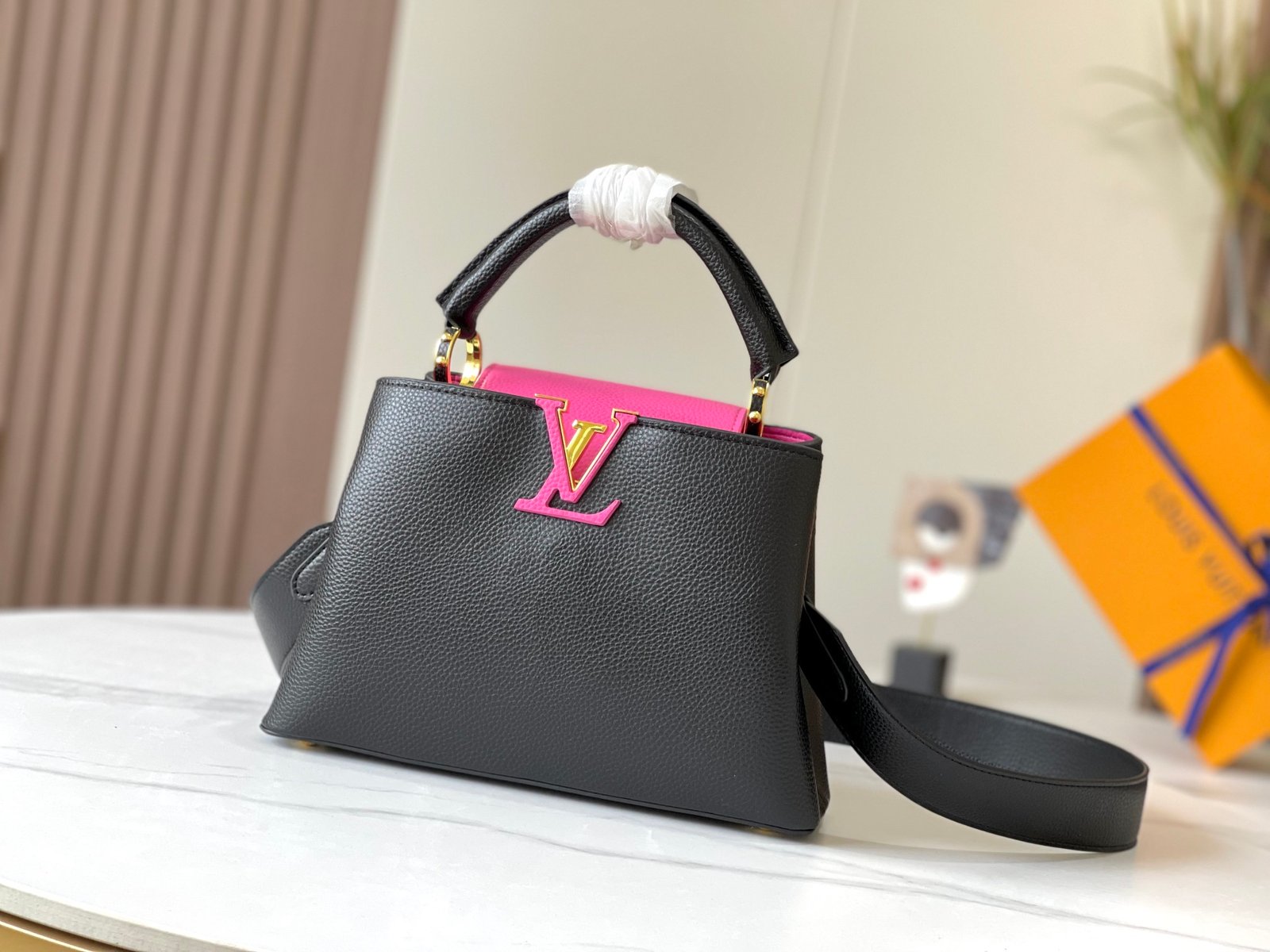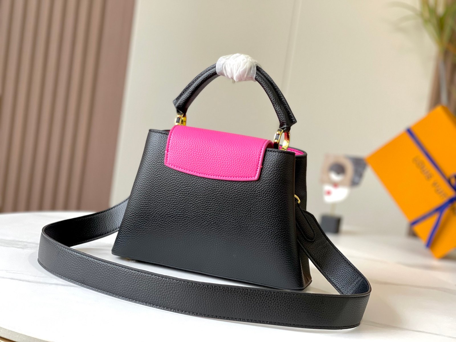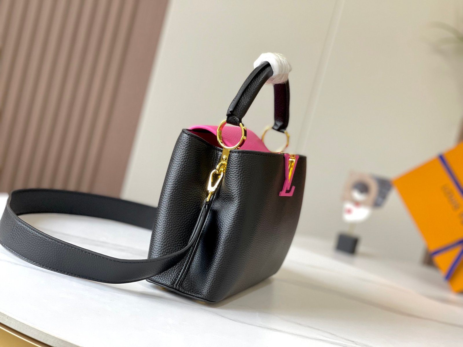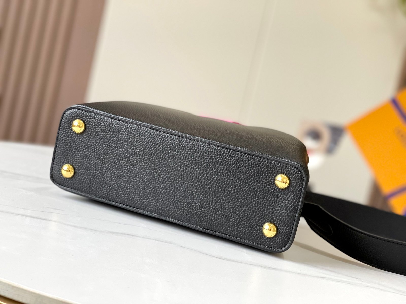 1:1 REPLICA BAGS Dimension: 27 x 18 x 9 cm / 10.6 x 7.08 x 3.54 inches Black / Rose Berlingot Taurillon leather Taurillon-leather trim Cowhide-leather lining Gold-color hardware Double carry style: flap inside or outside