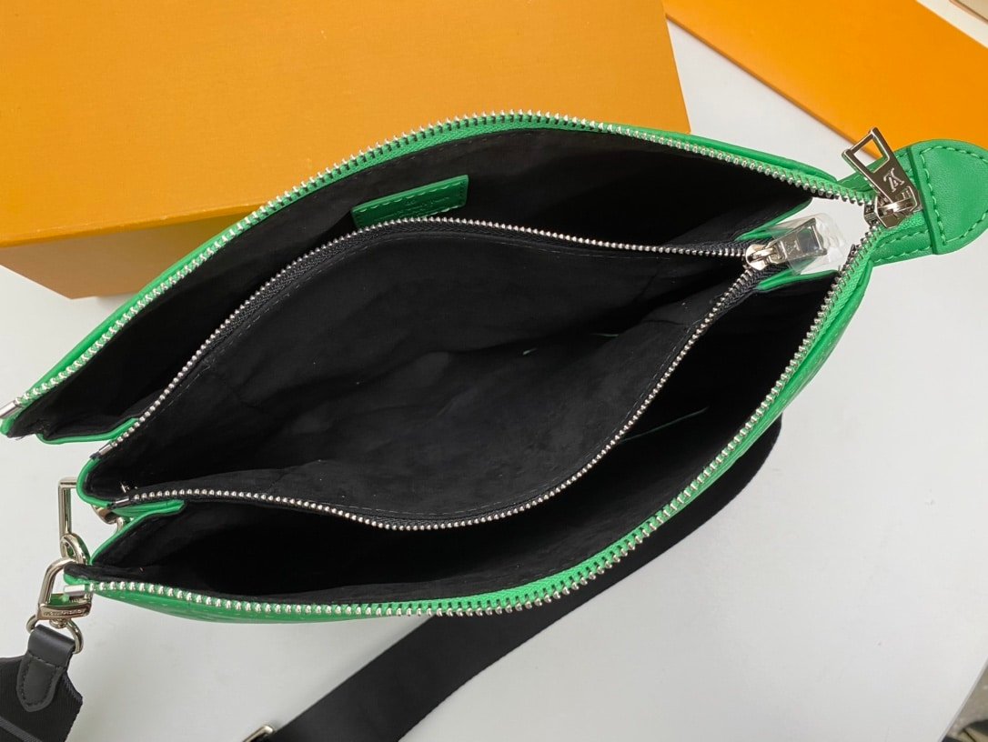 1:1 Replica Bags Measurements: 26 x 20 x 12 cm / 10.2 x 7.8 x 4.7 inches Motion Green Monogram-embossed puffy lambskin Calfskin-leather trim Microfiber lining Sliver hardware 3 inside compartments Zip closure Strap: Removable, adjustable