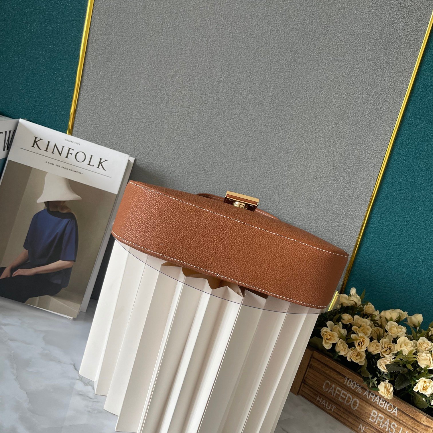 - Gold-color hardware