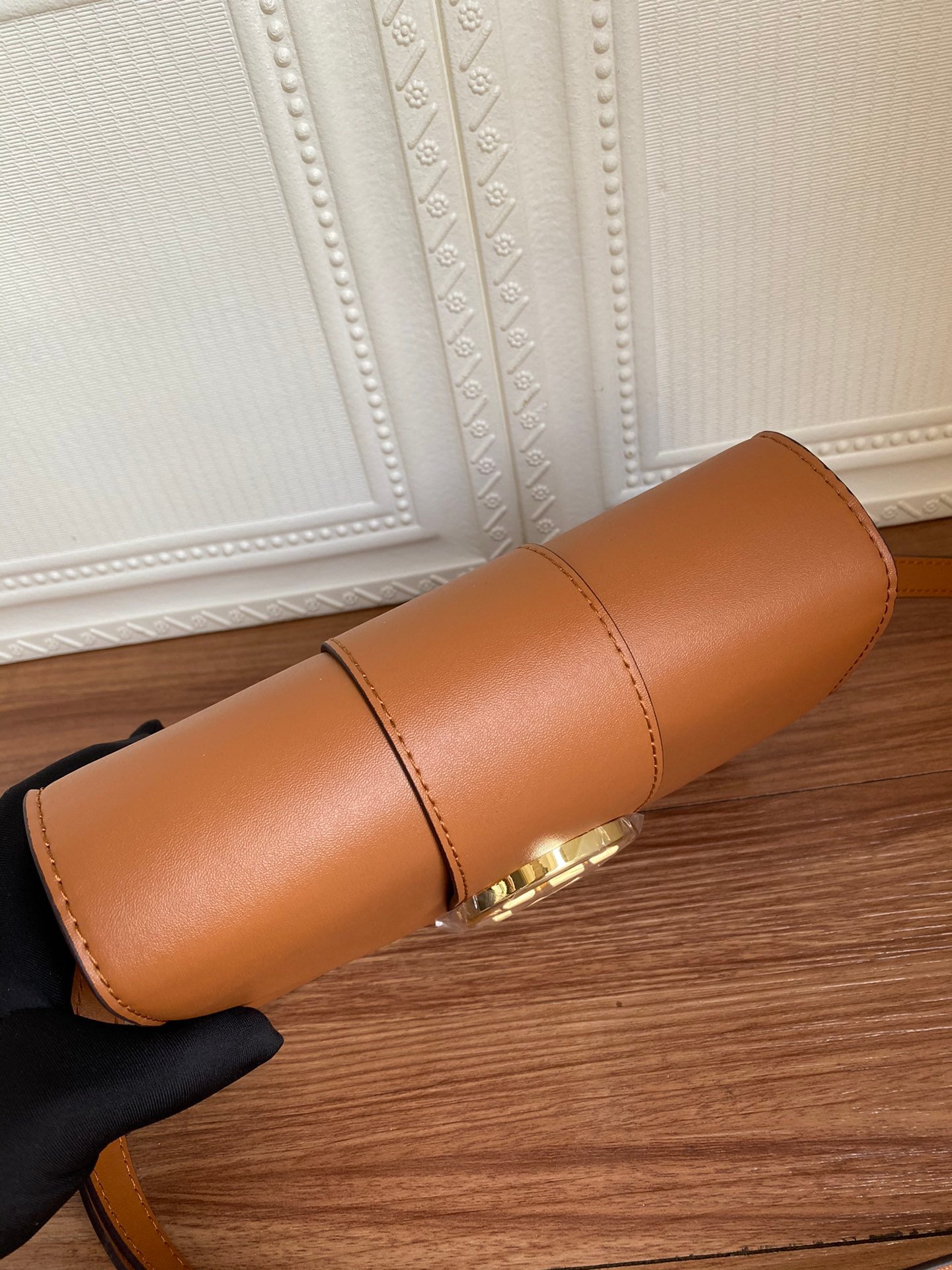 - Gold-color hardware