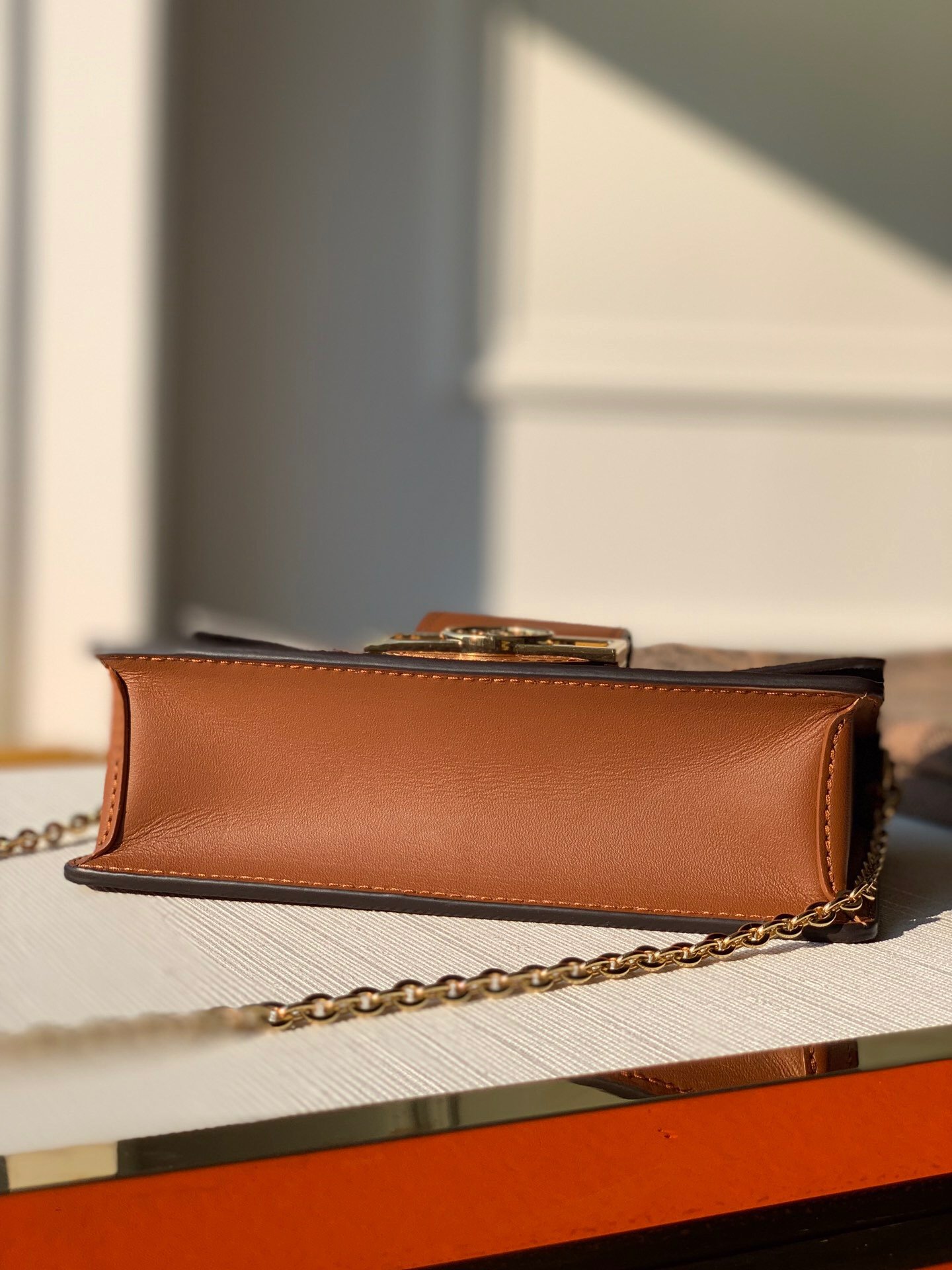 - Gold-color hardware