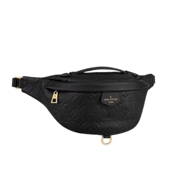 1:1 REPLICA BAGS Measurements: 37 x 14 x 13 cm / 14.6 x 5.5 x 5.1 inches Black Gold-toned hardware Louis Vuitton Bumbag features an engraved Monogram against an Empriente Creme grained leather