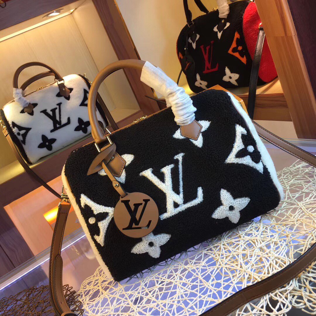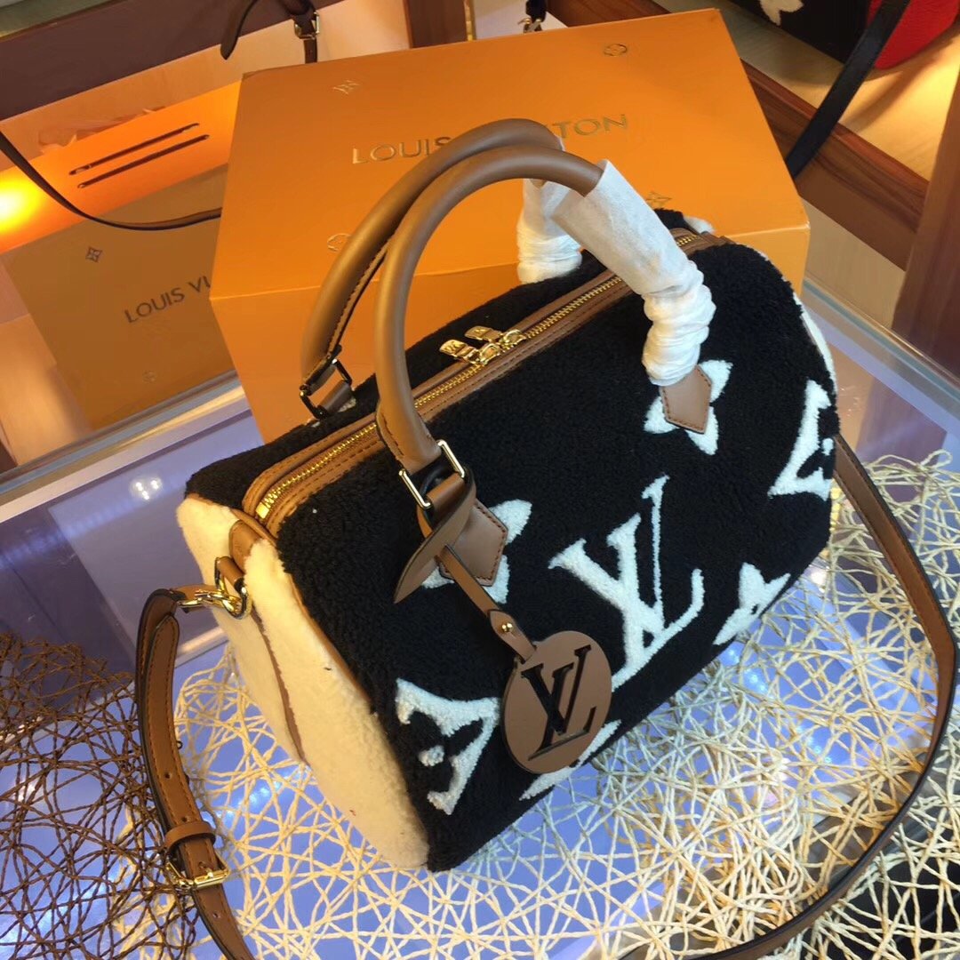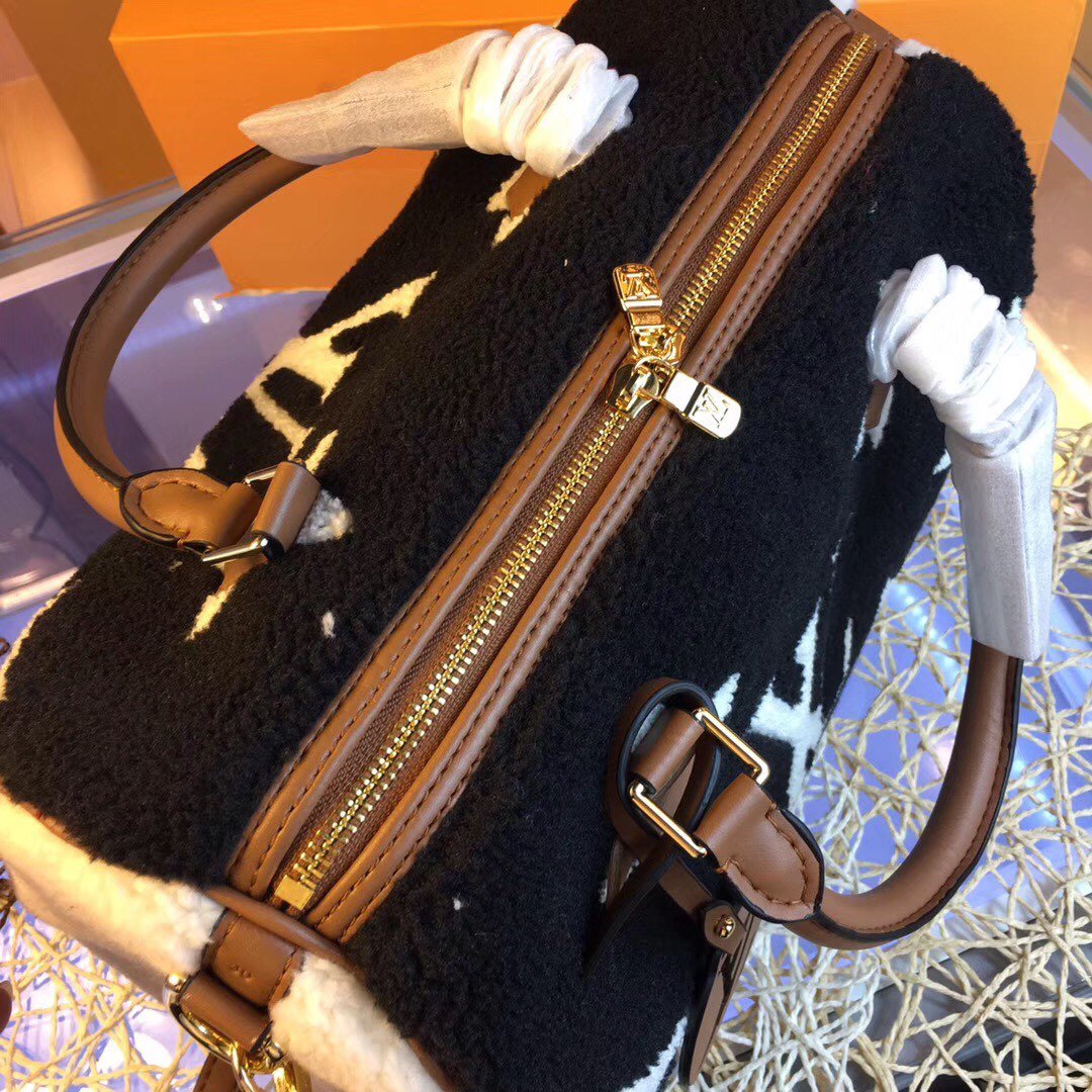 Louis Vuitton Monogram Teddy Speedy Bandouliere Black 30Cm