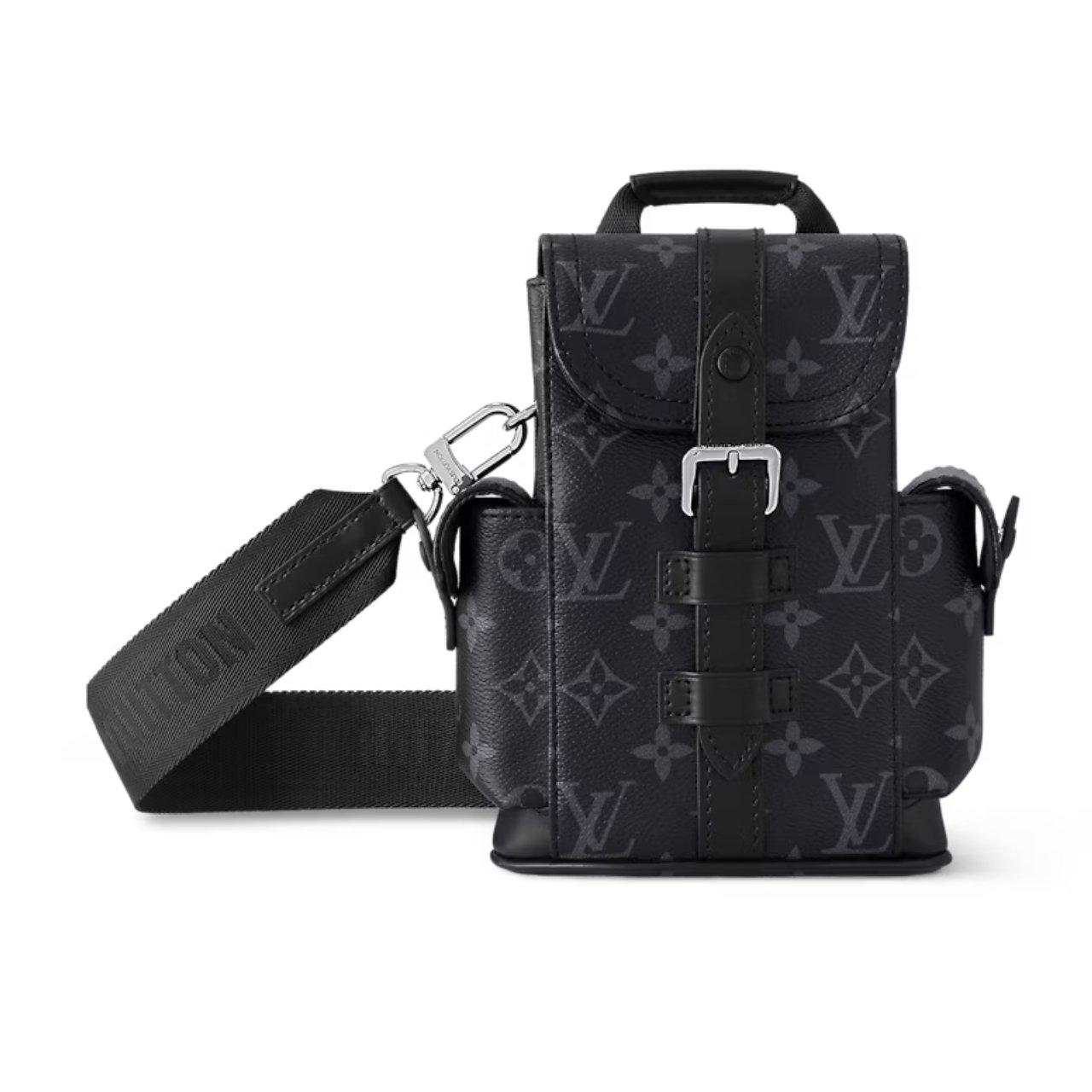 1:1 Replica Bags Measurements: 14x19x6 cm / 5.5×7.5×2.4 inches Monogram Eclipse coated canvas Cowhide-leather trim Textile lining Silver-color hardware 2 outside side pockets Signature snap closures Strap:Removable, adjustable