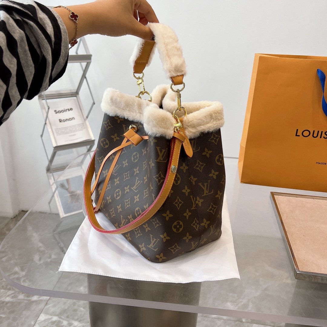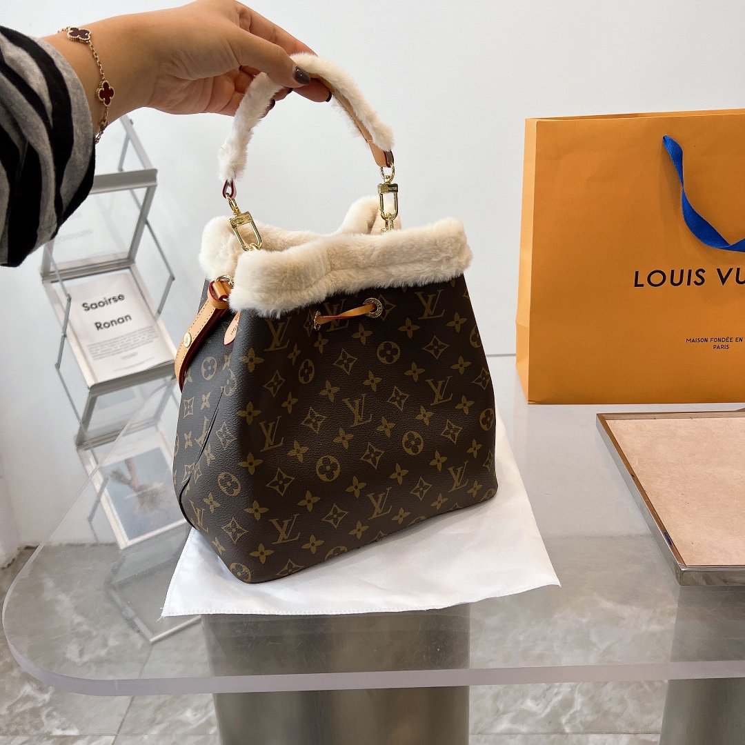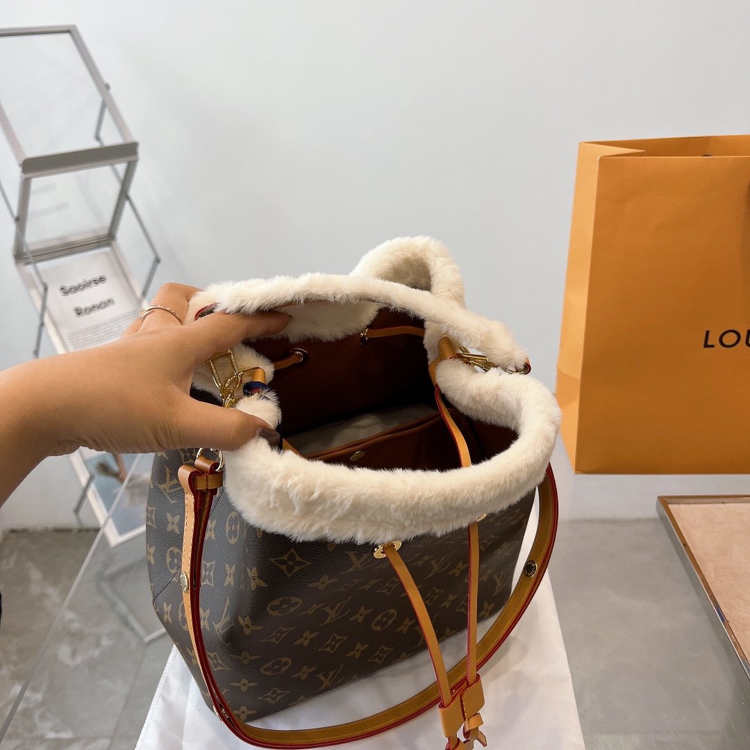 - Monogram coated canvas and shearling