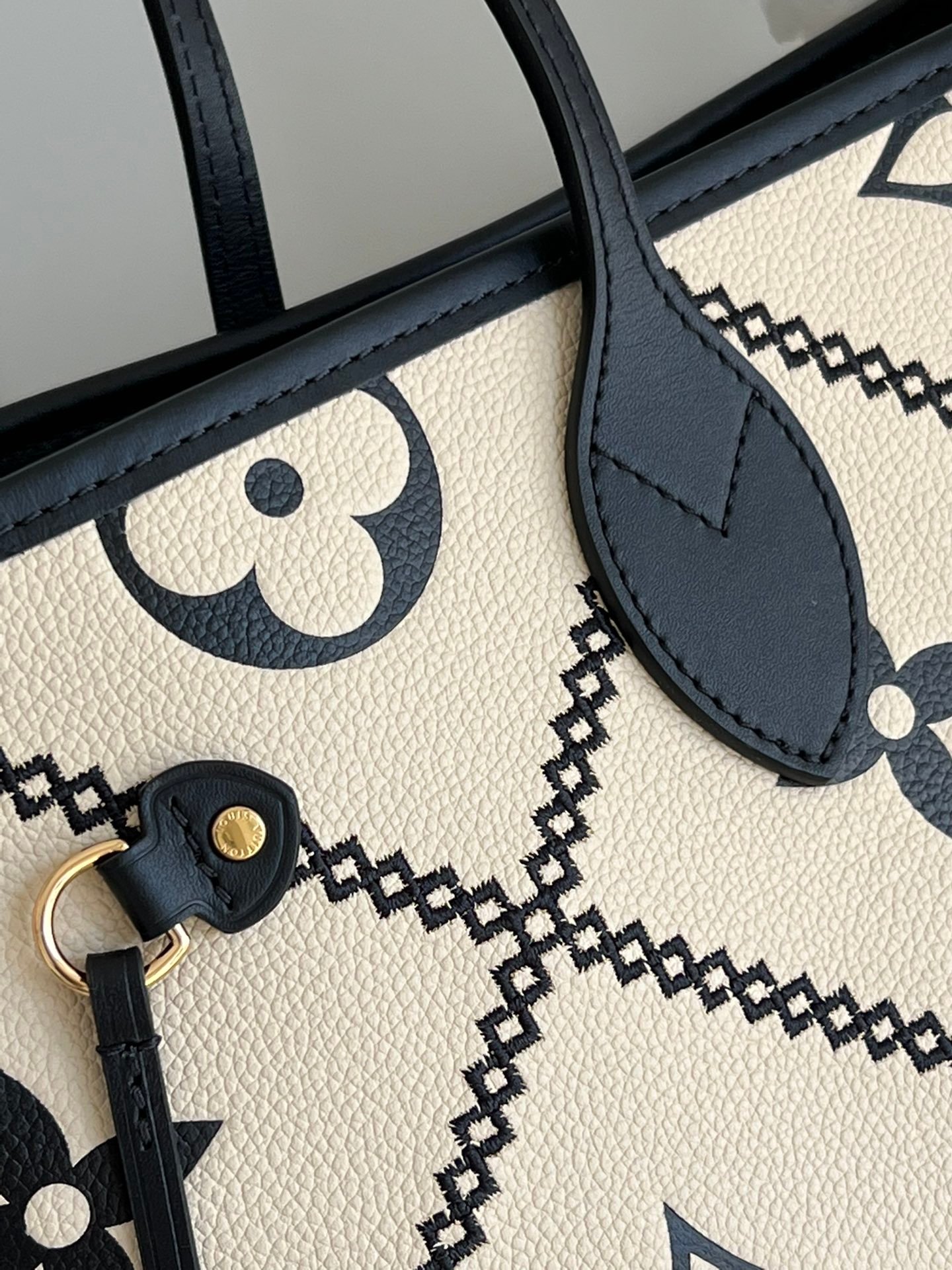 - Embroidered embossed supple grained cowhide leather