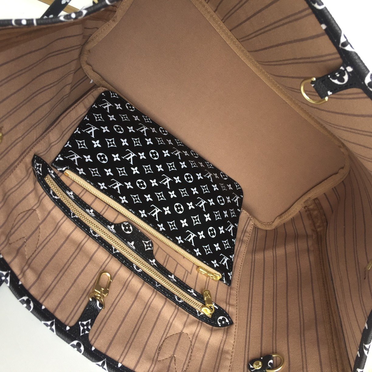 - Louis Vuitton’s signature Neverfull gets a wild new twist with a giant animal print Monogram in a reversible ivory and havana beige Coated Canvas