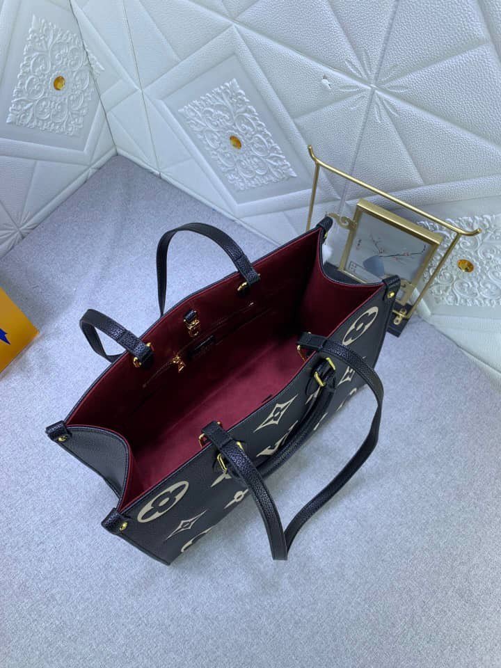 1:1 Replica Bags Measurements:? 34 x 26 x 13 cm / 13.3 x 10.2 x 5.1 inches Black/beige Cowhide material with embossed grain Textured cowhide trim Microfiber fabric lining Metallic gold details The inner compartment has a zipper