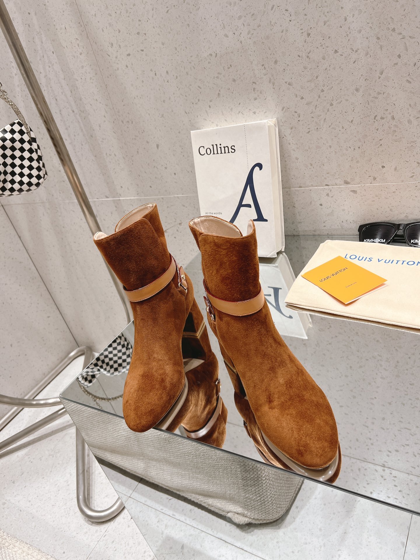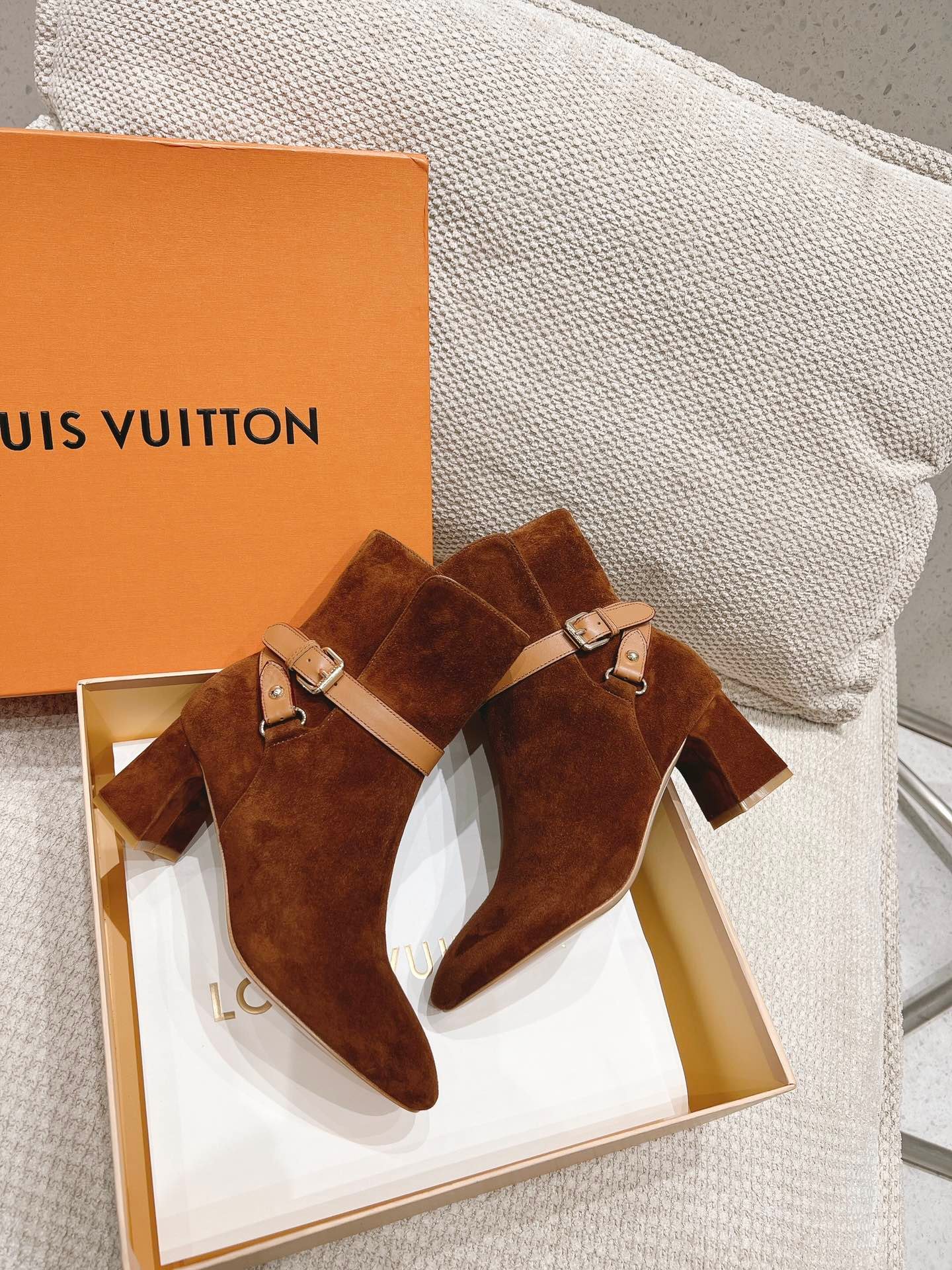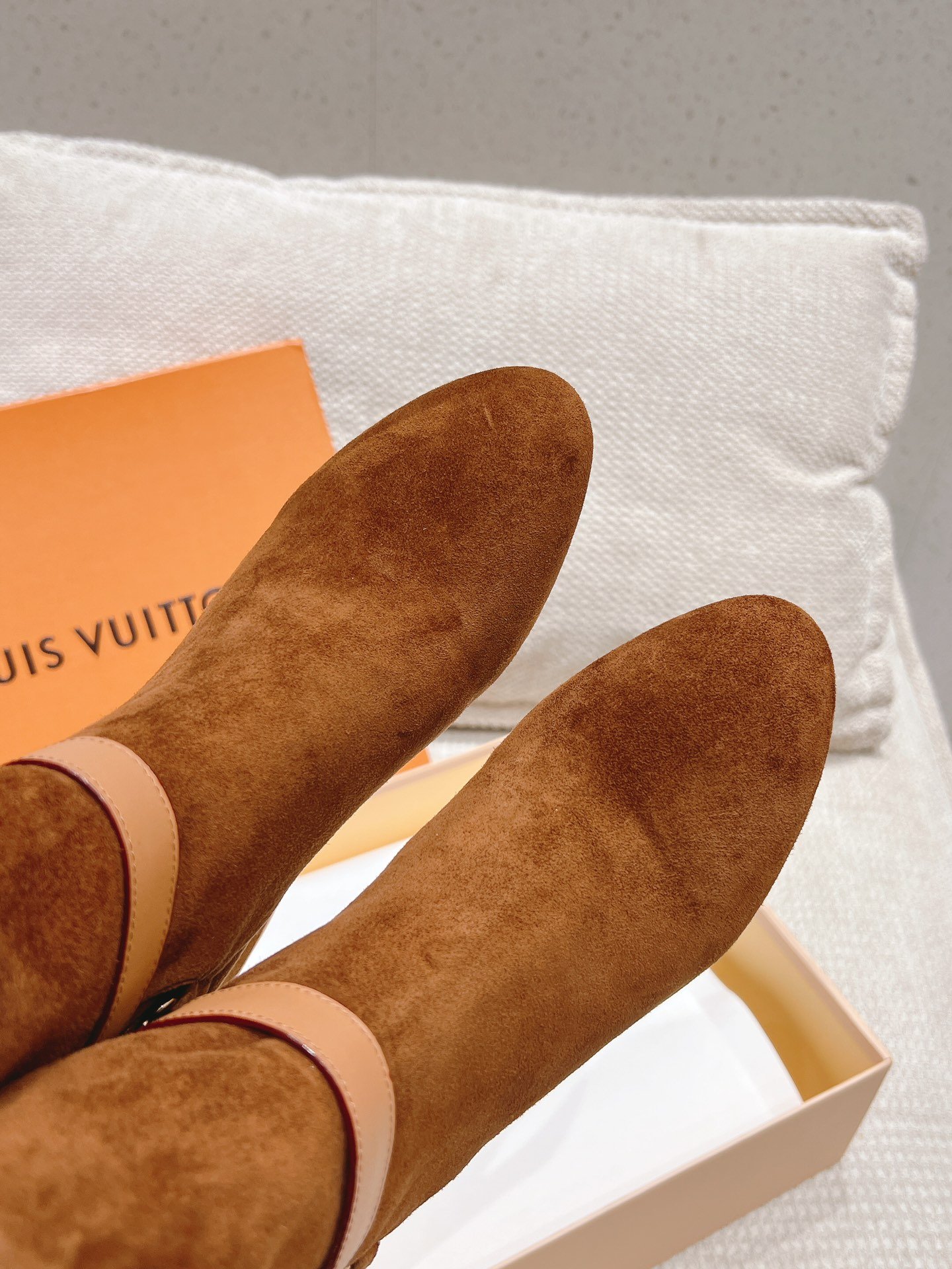 1:1 REPLICA SHOES Suede Leather Leather outsole Louis Vuitton-engraved buckle LV Initials stud on the heel