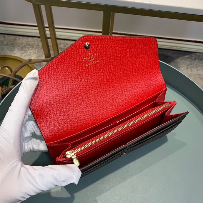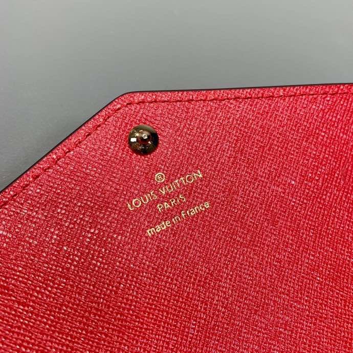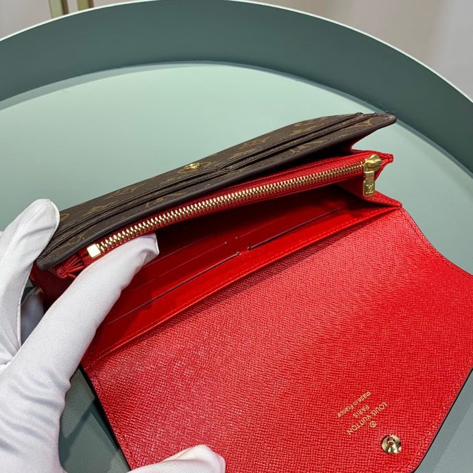 1:1 REPLICA WALLETS 19 x 10.5 x 2.5 cm / 7.5 x 4.1 x 0.8 inches (length x Height x Width) Coquelicot Red Monogram coated canvas Grained cowhide-leather lining Gold-color hardware Press-stud closure 2 large gusseted compartments Zipped coin pocket Inside flat pocket Outside flat pocket 16 card slots