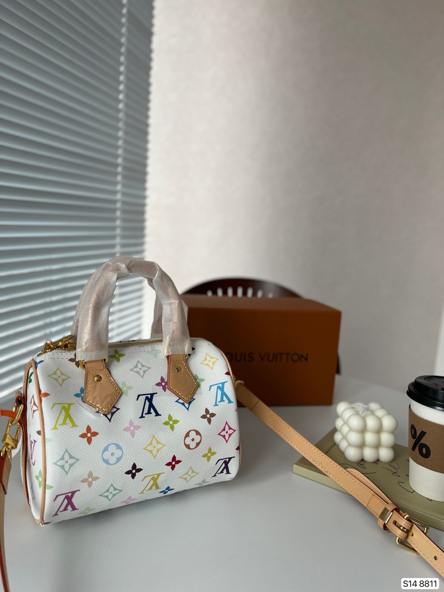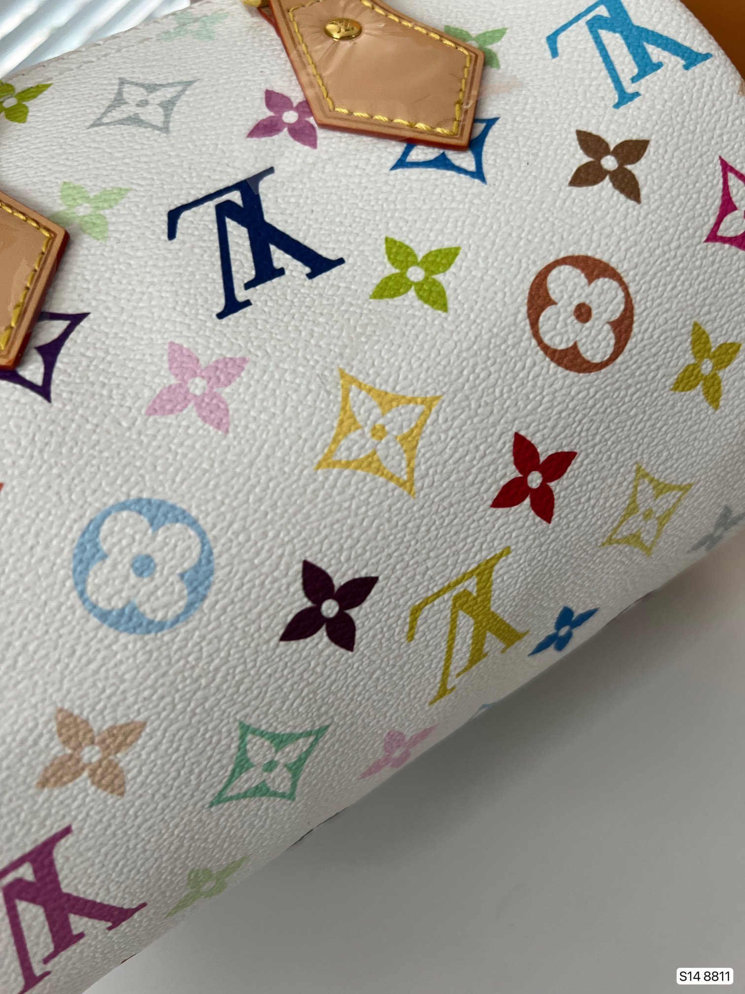 1:1 Replica Bag Measurements: 20 x 14 cm/7.9 x 5.5 inches White coated canvas Dual rolled leather top handles Top zip closure White/multicolour