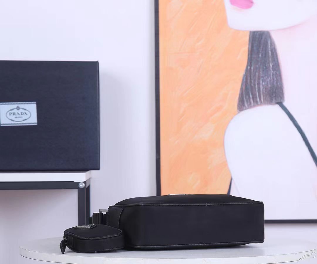1:1 REPLICA BAGS Dimensions: 23 x 16 x 7 cm / 9.1 x 6.3 x 2.8 inches Re-Nylon detachable zipped pouch Zip pocket Metal hardware Enamel metal triangle logo on the front Zipper closure Re-Nylon logo print lining with zipped pockets