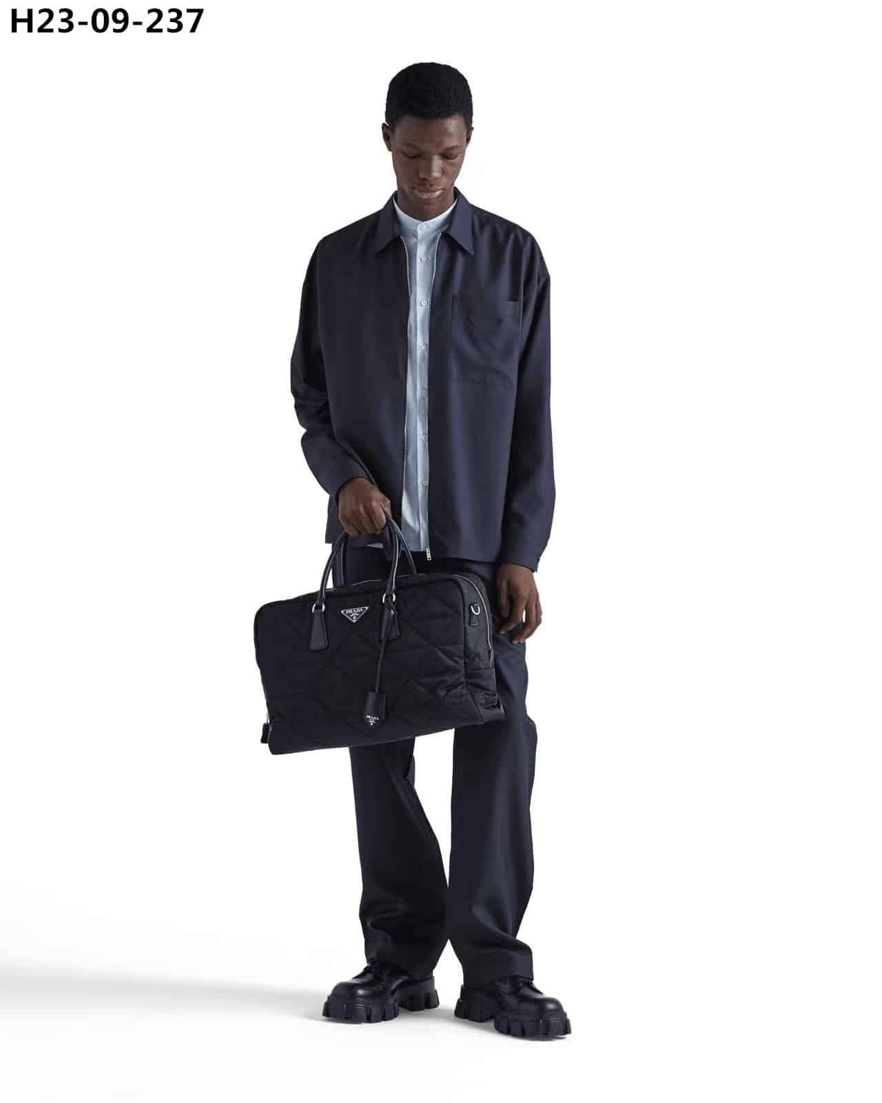 - Detachable, adjustable shoulder strap in embroidered webbing and leather