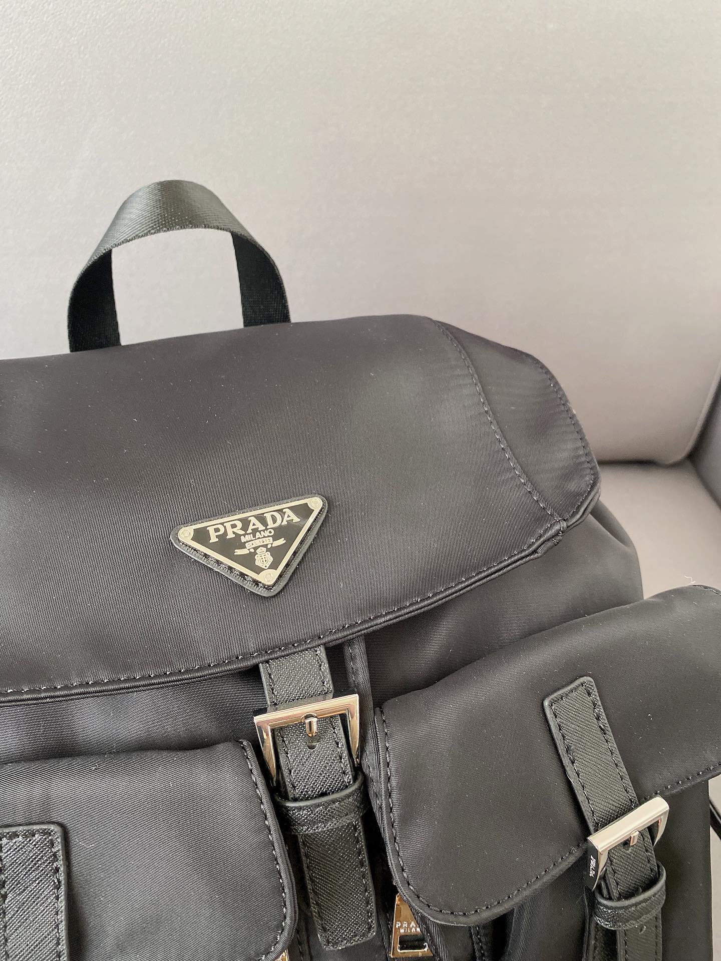 - A sustainable evolution of the industrial fabric that is a Prada hallmark, and Saffiano leather details.