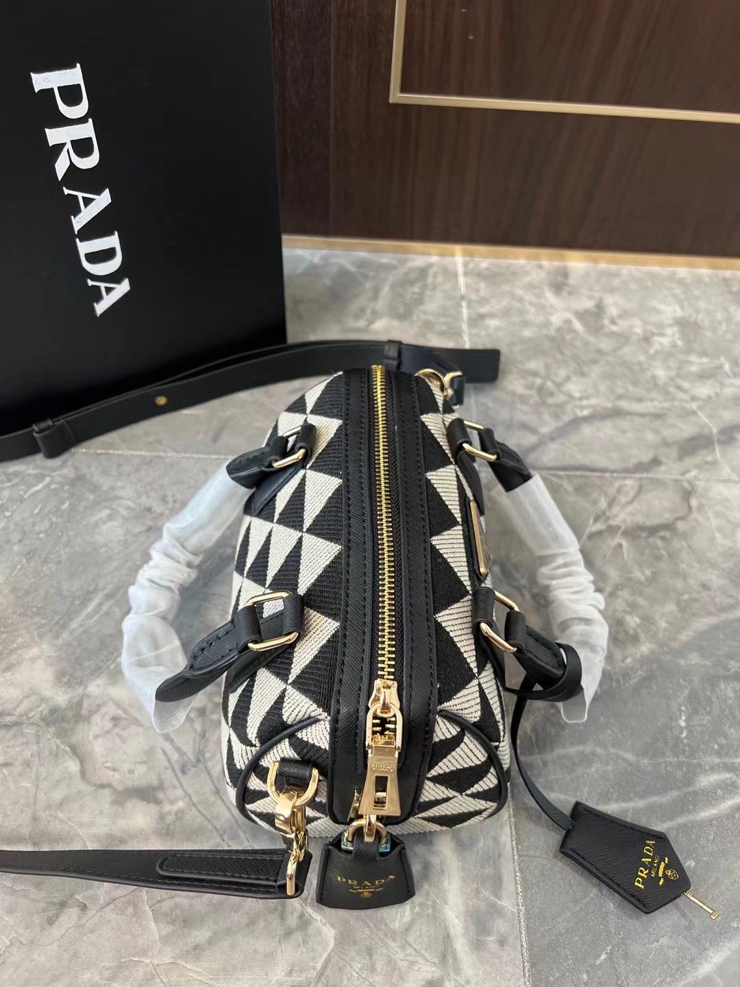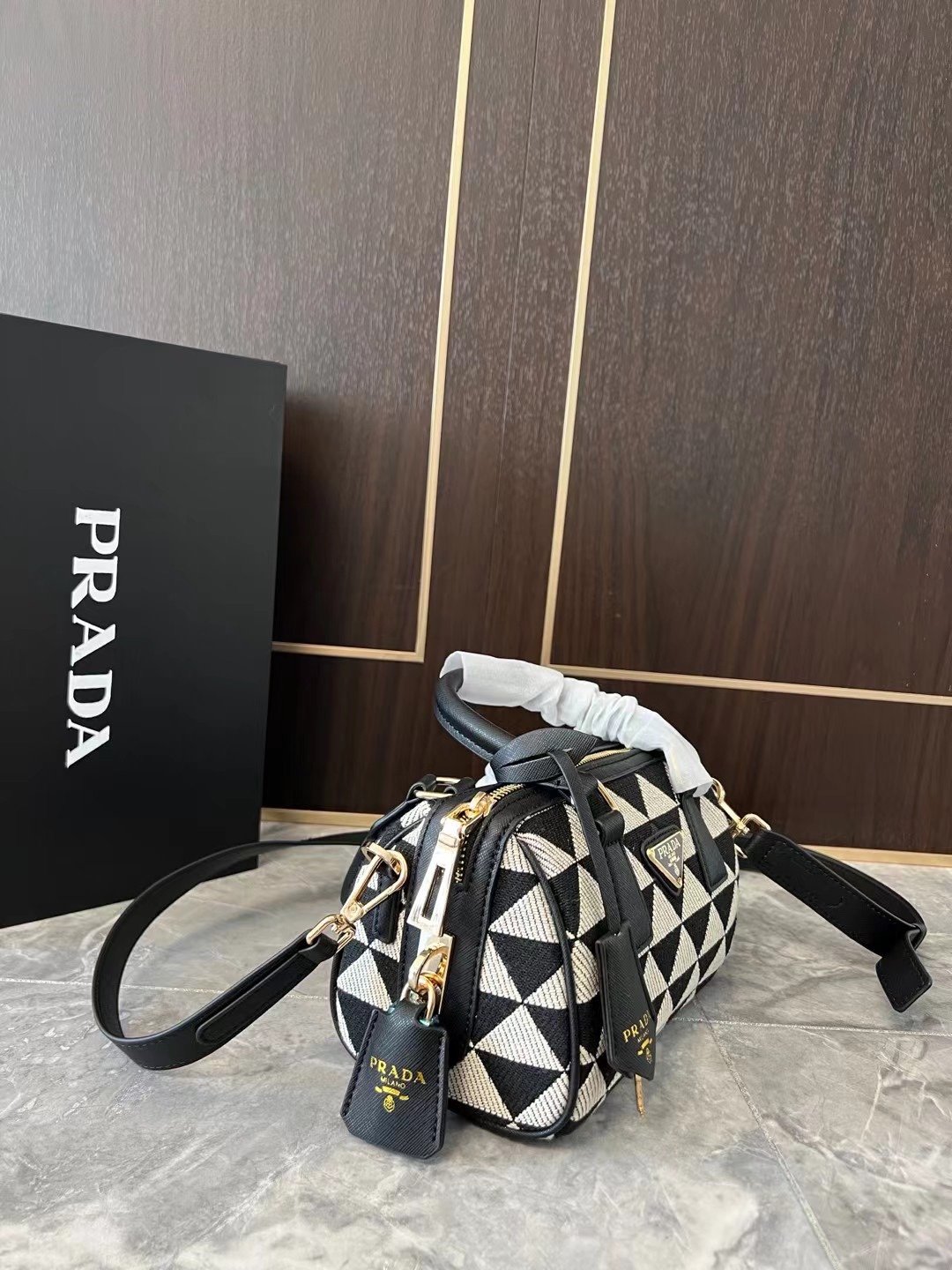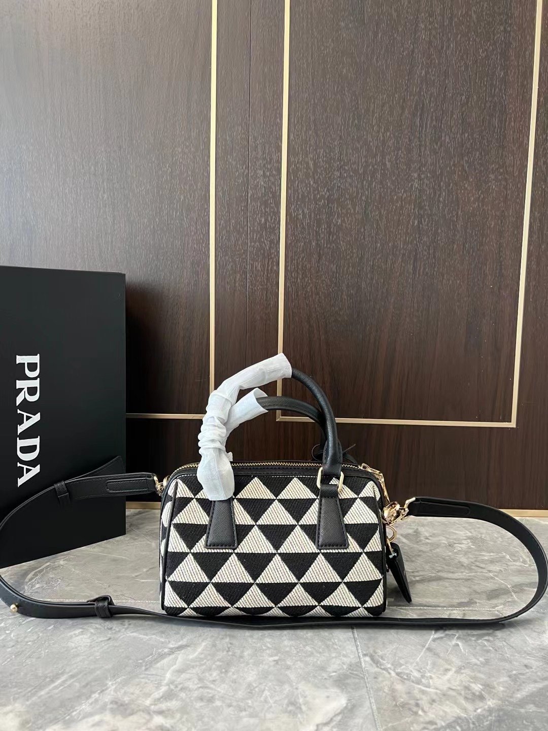 - Made of fabric with Saffiano handles, this top-handle bag combines a classic silhouette with modern, functional details.