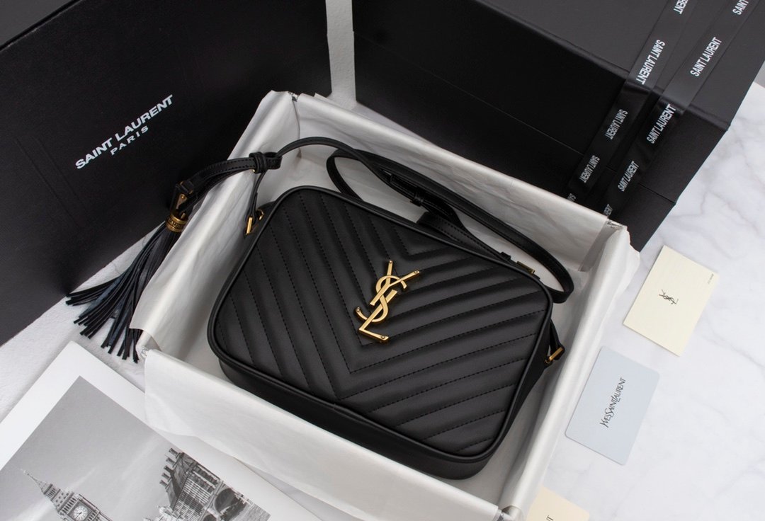 Saint Laurent Lou Camera Bag In Quilted Black Gold Leather 23Cm 612544Dv7071000