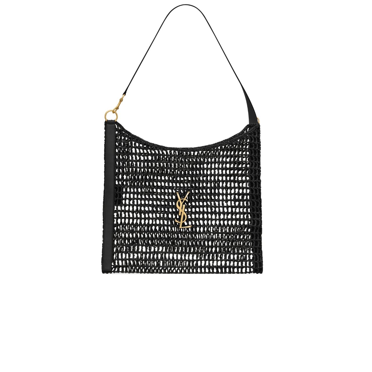 Saint Laurent Oxalis In Raffia Crochet And Leather Black 41Cm 781289Gaaea1000