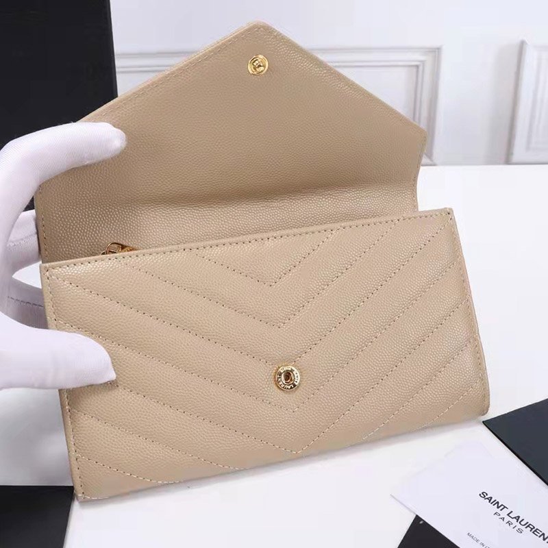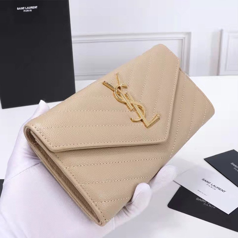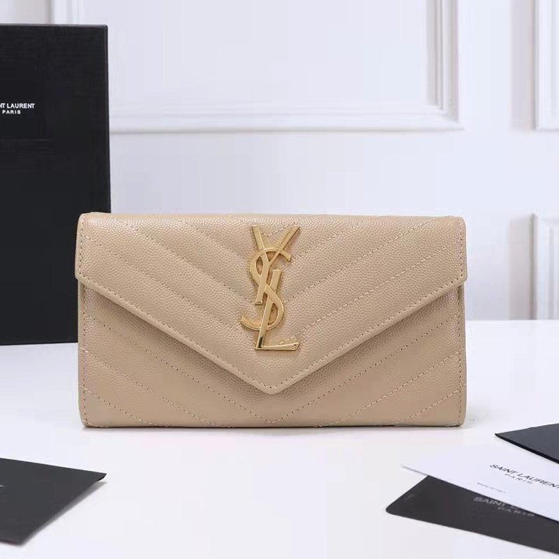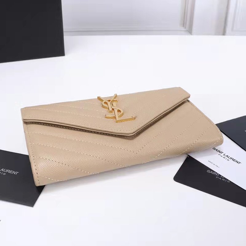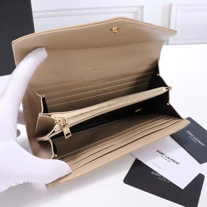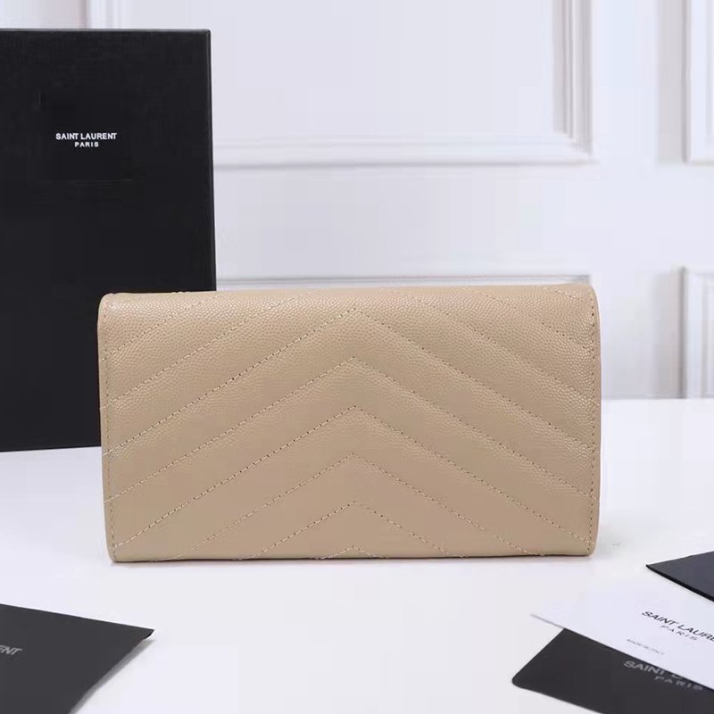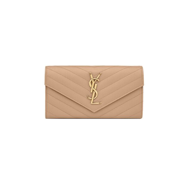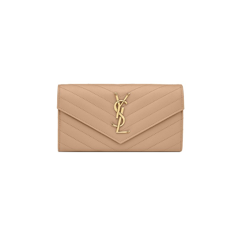 MONOGRAM LARGE FLAP WALLET WITH INTERLACING METAL YSL INITIALS AND QUILTED OVERSTITCHING.