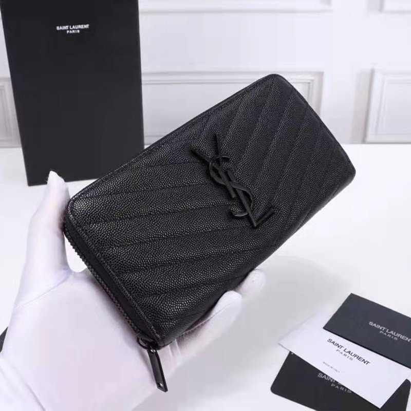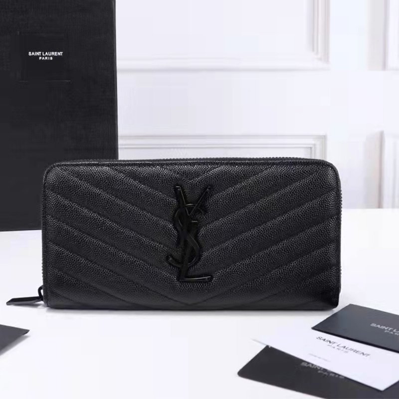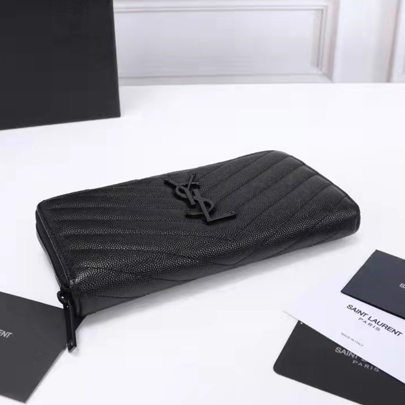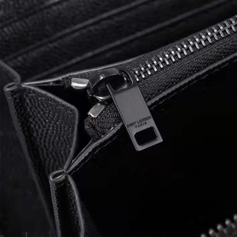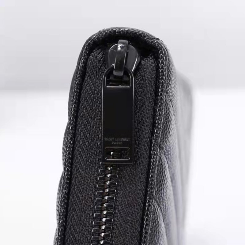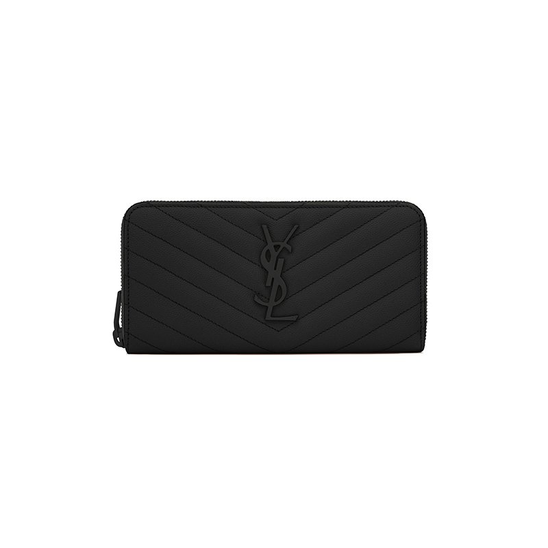 CLASSIC MONOGRAM SAINT LAURENT ZIP AROUND WALLET MADE WITH METAL-FREE TANNED LEATHER, FEATURING A METAL INTERLOCKING YSL SIGNATURE AND MATELASS? STITCHING.