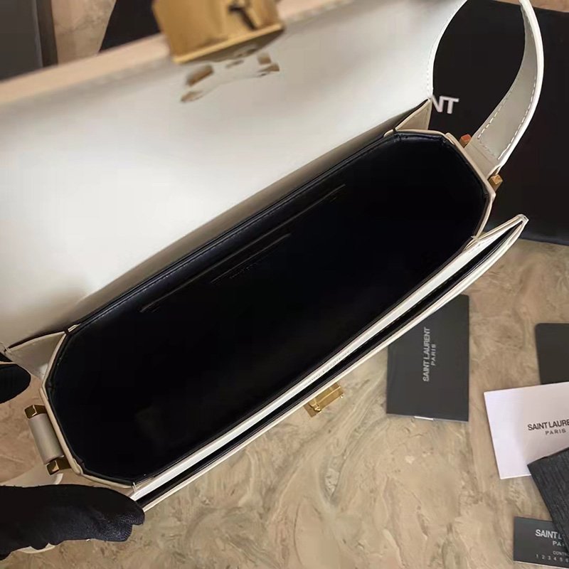 SAINT LAURENT MONOGRAM SATCHEL BAG WITH FRONT FLAP AND PIVOTING METAL YSL CLOSURE, FEATURING AN ADJUSTABLE SHOULDER STRAP.
